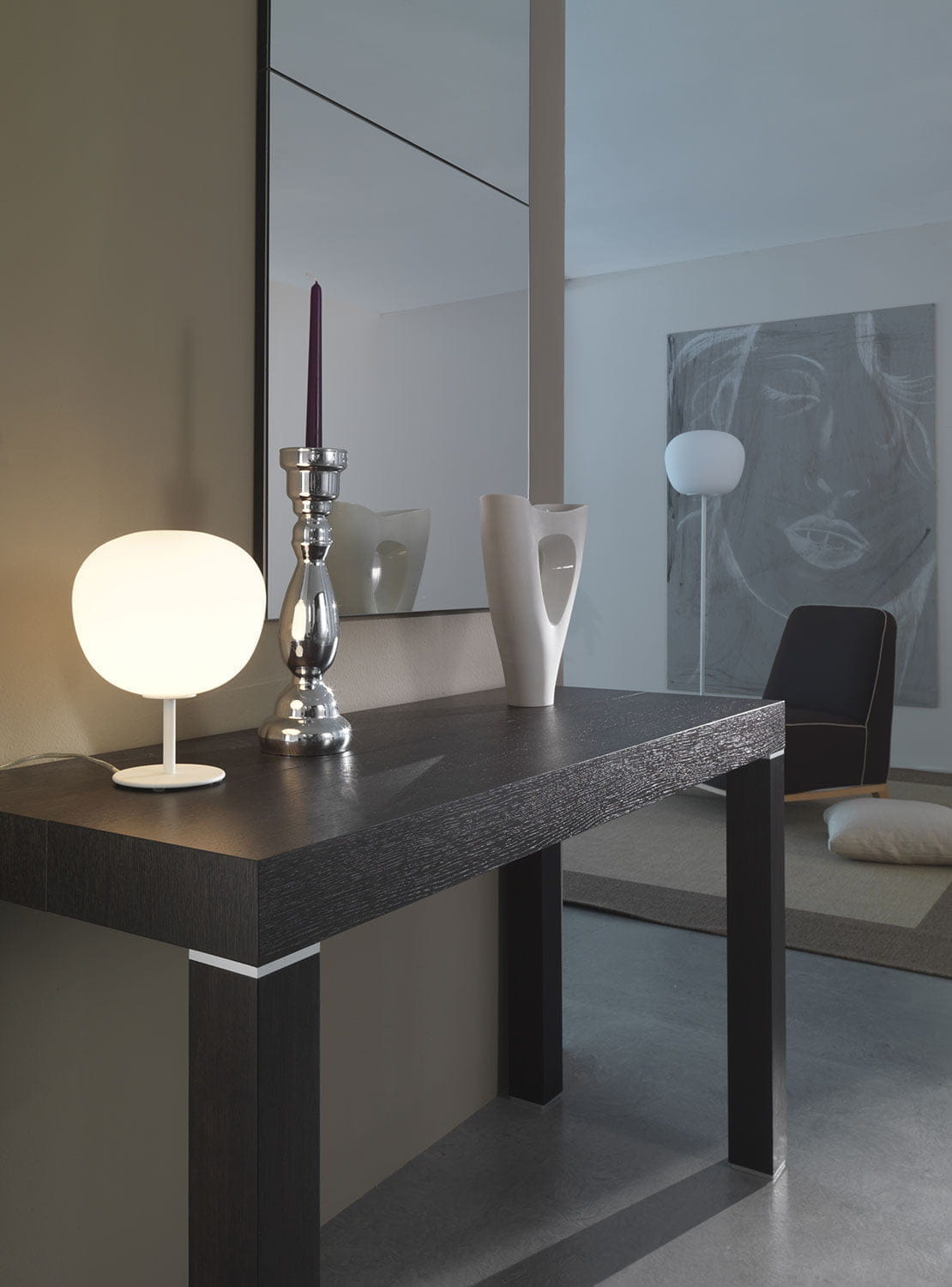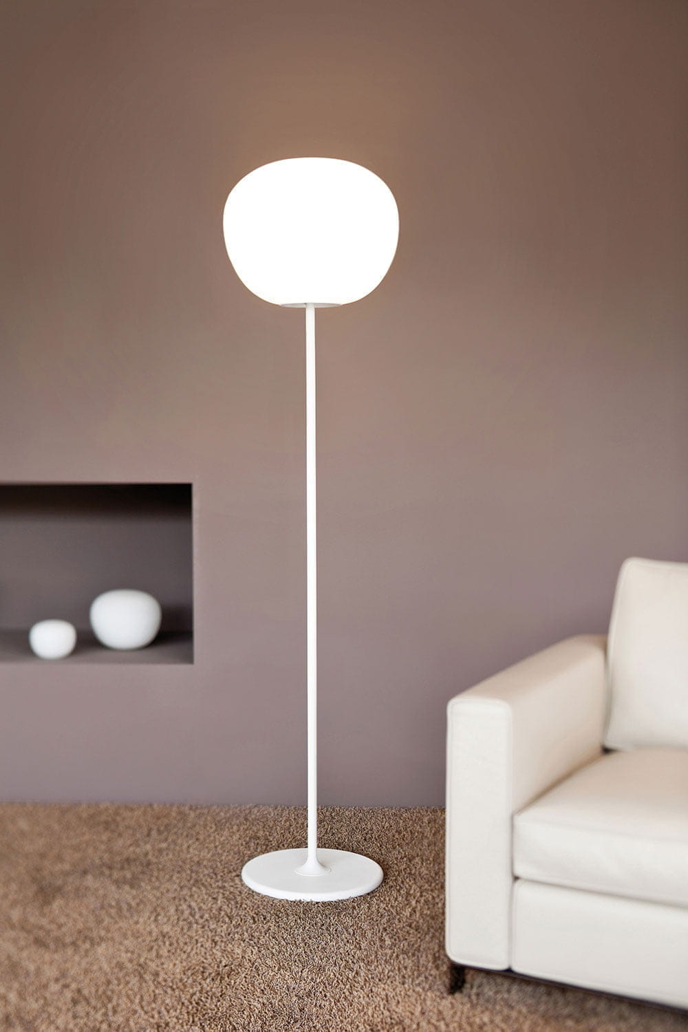 The Lumi Mochi wall and ceiling lamp is available in five sizes with the possibility of using energy-efficient halogen or integrated LED bulbs. This lamp can be inserted into any living environment or public place due to its high luminous efficiency and modern yet classic design.