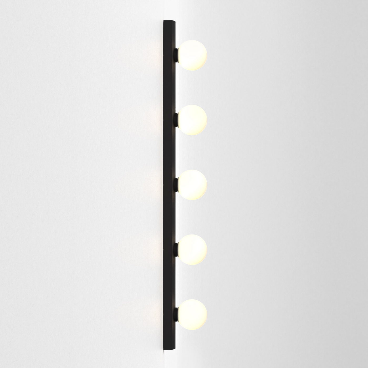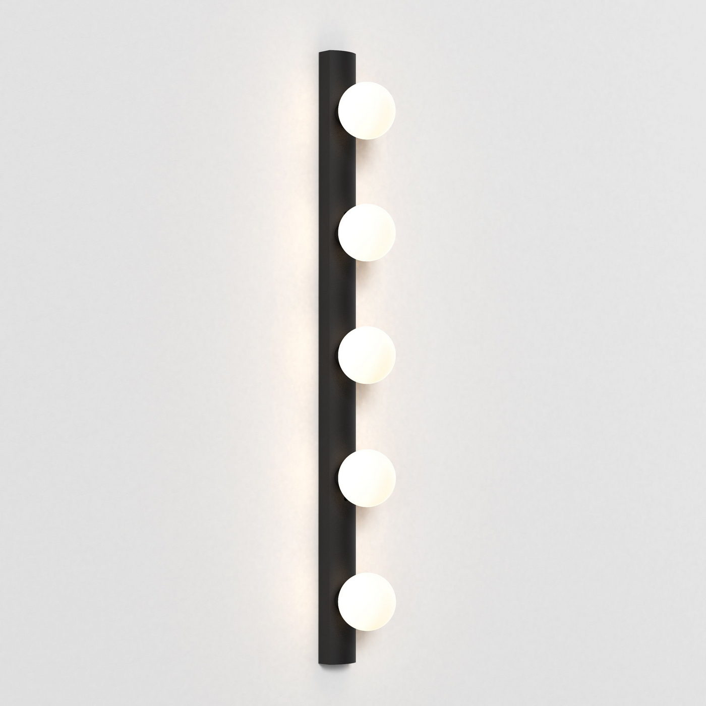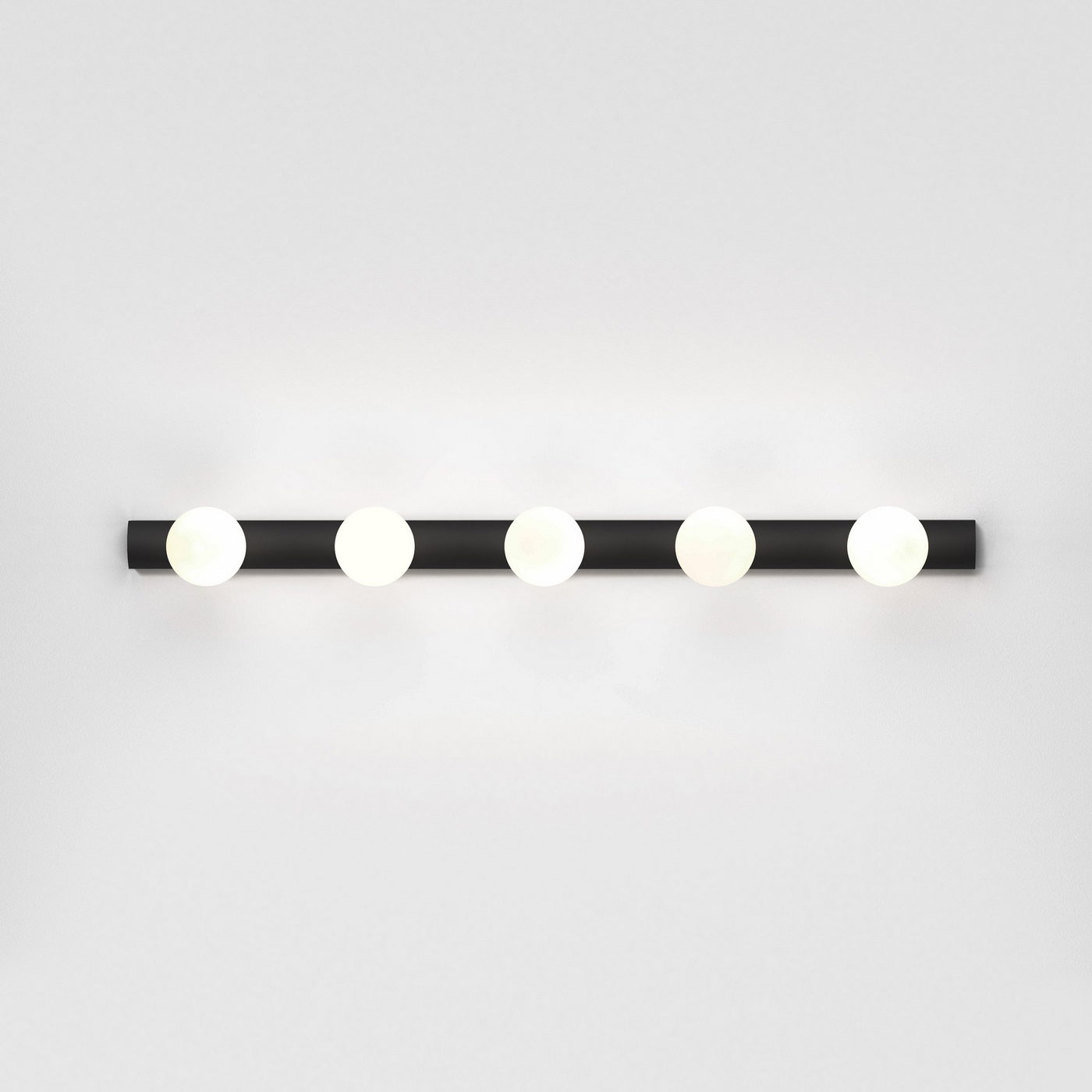 Светильник Cabaret 5 II от Astro lighting выполнен в стильном дизайне с использованием пяти матово-белых стеклянных шаров, что делает его отличным выбором для ванных комнат и гардеробных. Этот светильник выполнен в матово-черном металлическом корпусе и подходит для установки как вертикально, так и горизонтально. Он обладает степенью защиты IP44, что гарантирует безопасность в условиях повышенной влажности. Максимальная мощность ламп составляет 3,5 Вт каждая, что позволяет эффективно освещать пространство. Также предусмотрена возможность диммирования, что делает этот светильник еще более универсальным.