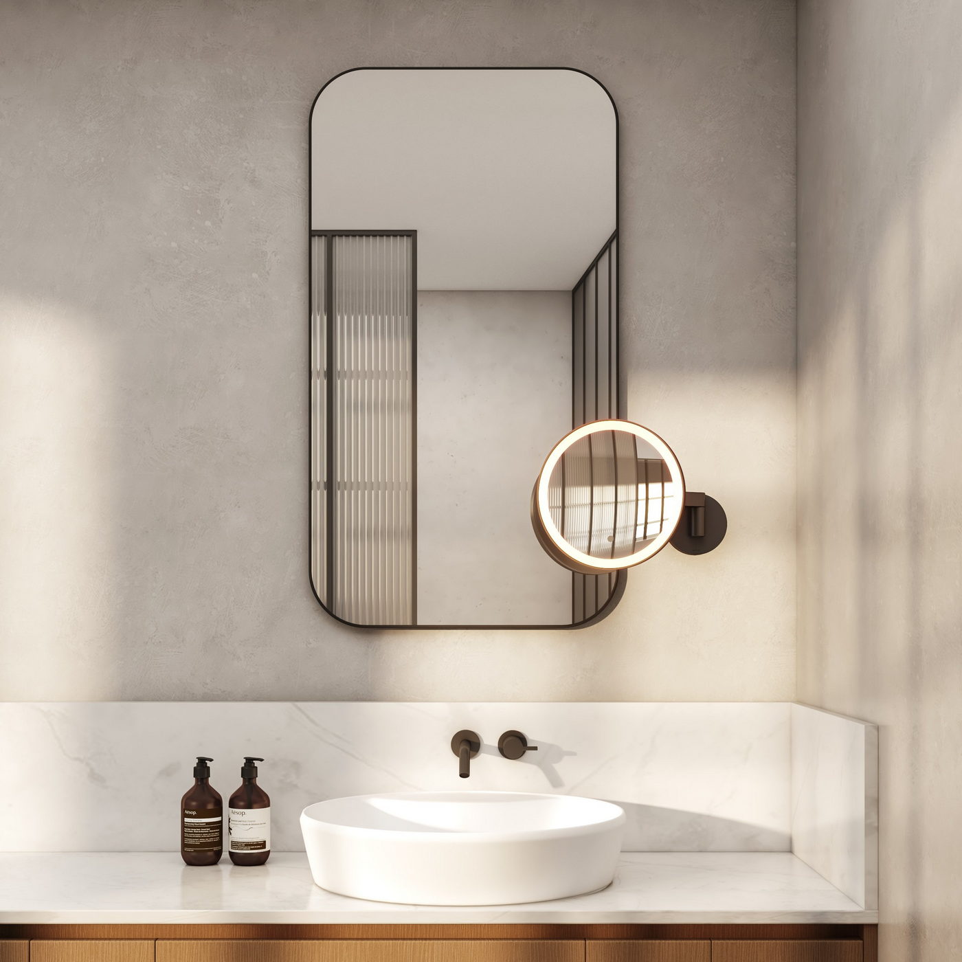 Зеркало Nagoya с подсветкой и 5-кратным увеличением от Astro Lighting — это надежное и современное решение для ванной комнаты. Полностью регулируемая конструкция с сенсорным датчиком позволяет легко изменять направление зеркала для удобного использования, идеально подходя для точных процедур, таких как макияж или бритье. Модель оснащена двумя лампами G9 мощностью до 20 Вт каждая, обеспечивая яркое и равномерное освещение. Подсветка с мягким светом помогает создать комфортную атмосферу в ванной комнате, а степень защиты IP44 гарантирует безопасную эксплуатацию в условиях повышенной влажности. Полированный хром придает зеркалу стильный и современный вид, подходящий для различных интерьеров.