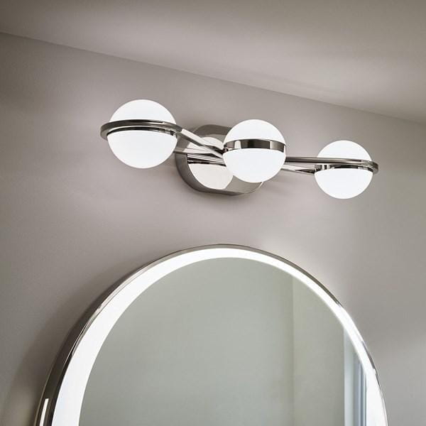 Настенный светильник из коллекции Brettin от Kichler с полированной никелевой отделкой сочетает в себе функциональность и современный дизайн для ванной комнаты. Три интегрированные LED-лампы расположены вдоль конструкции длиной и шириной 610 мм, обеспечивая равномерное рассеянное освещение, которое уменьшает тени и блики у зеркала, что важно для косметических процедур и ухода за лицом. Металлический корпус с полированной никелевой поверхностью обеспечивает долговечность и визуальный акцент, а круглые рассеиватели мягко распределяют свет по комнате. С цветовой температурой 3000K свет создаёт тёплое, естественное освещение, а индекс цветопередачи Ra 90 гарантирует точное воспроизведение оттенков кожи и предметов. Возможность диммирования позволяет регулировать интенсивность света в зависимости от задач, а суммарный световой поток 1150 лм обеспечивает достаточное освещение для среднего по размеру помещения. Светильник весом 1,8 кг рассчитан на влажные помещения (Damp), что делает его безопасным для установки над умывальником.