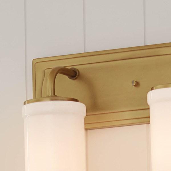 Настенный светильник Kichler из коллекции Vetivene с тремя лампами выполнен с опальными стеклянными плафонами на фоне из натуральной латуни, создавая мягкое и равномерное освещение. Конструкция длиной 610 мм позволяет использовать светильник над зеркалами в ванных комнатах или коридорах, обеспечивая функциональное локальное освещение. Настенный монтаж в помещениях с повышенной влажностью (Damp) гарантирует безопасную эксплуатацию, а кабель длиной 152 мм облегчает подключение к сети с напряжением 120 В. Масса 2,2 кг делает установку удобной, при этом светильник не поддерживает диммирование и не включает лампы в комплекте, что позволяет использовать стандартные источники света. Натуральная латунная отделка плафонов смягчает свет и добавляет декоративный блеск, создавая эстетический акцент в интерьере. Светильник сочетает функциональность и декоративность, обеспечивая комфортное и аккуратное локальное освещение.