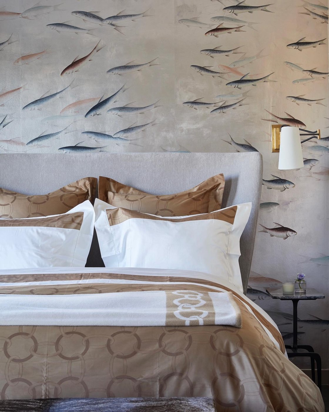 Настенный светильник Visual Comfort из коллекции Keil выполнен на поворотном кронштейне длиной 29 дюймов и сочетает антикварную латунь с чёрными элементами рамы. Конструкция позволяет выдвигать и разворачивать абажур в сторону, поэтому бра удобно использовать как локальное освещение у изголовья кровати или рядом с креслом для чтения. При движении руки кронштейн меняет положение, направляя поток точно на книгу или рабочую поверхность, а тканевый абажур смягчает свет и убирает резкие тени. Мощность до 40 Вт обеспечивает достаточную яркость для вечернего сценария без необходимости включать основной свет в комнате. Контраст латуни с ручной протиркой и чёрного металла подчёркивает графику конструкции и делает механизм визуально аккуратным даже в разложенном положении. Такое решение помогает организовать регулируемый источник света там, где важна гибкость и контроль направления.