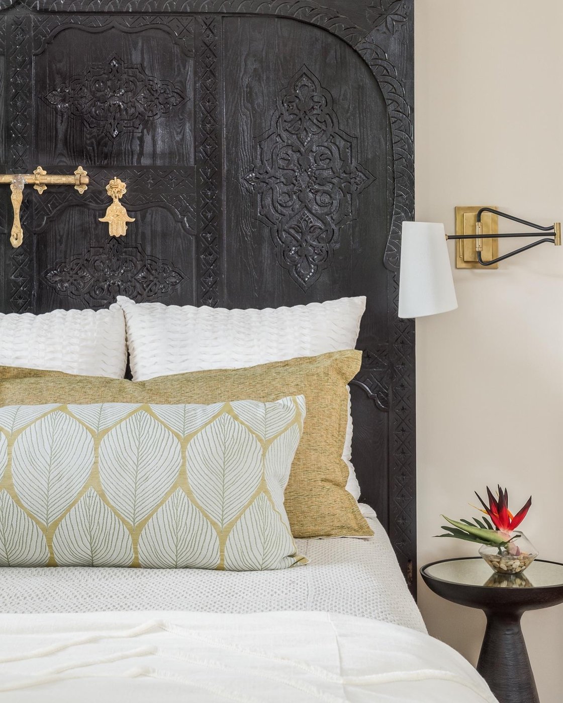 настенный светильник с текстильным абажуром на латунном кронштейне с черными элементами