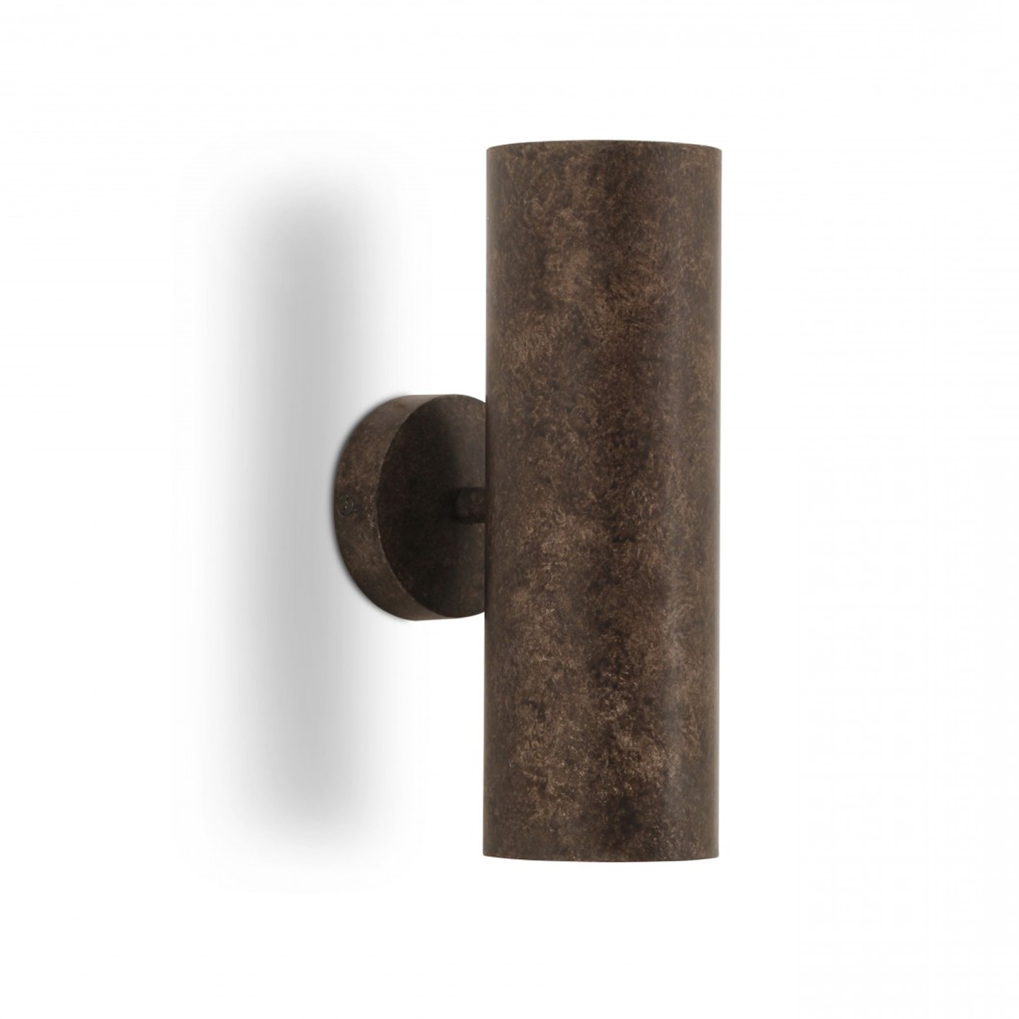 Настенный светильник предназначен для локального освещения и фиксируется на стене через металлический крепёж. Корпус выполнен из стали и латуни с декоративной отделкой, имеет форму цилиндрического столба с острыми углами, создавая строгий вертикальный силуэт. Оснащён двумя лампами G9 LED по 3 Вт каждая, обеспечивающими суммарный световой поток 320 лм. Ширина корпуса 80 мм, что делает светильник компактным и заметным на стене, при этом интерьерное фото демонстрирует его использование в качестве акцентного настенного элемента. Конструкция не имеет подвижных частей, источники света скрыты внутри цилиндра, направляя свет преимущественно вперёд и вниз.