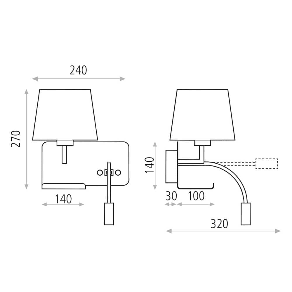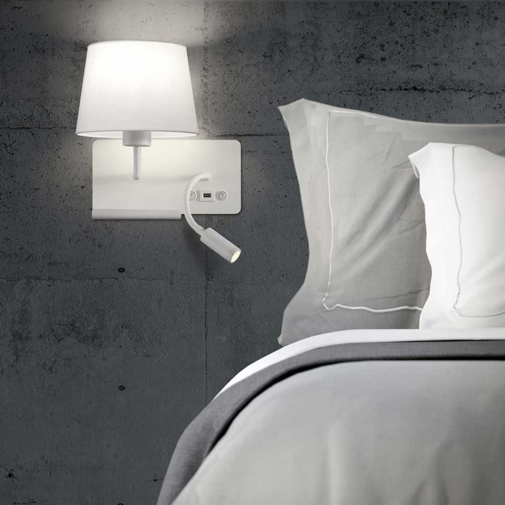 🆔 Настенное бра с текстильным абажуром и USB-портом Hold by ACB Iluminacion