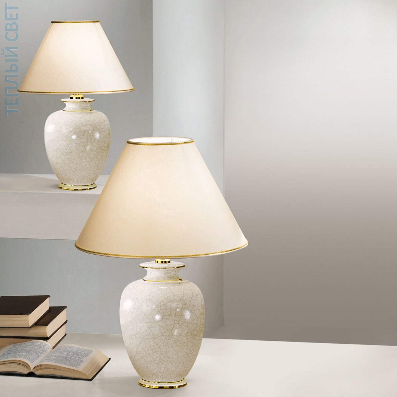 🆔 Настольная лампа с круглым абажуром и керамическим основанием золотой Giardino by Kolarz