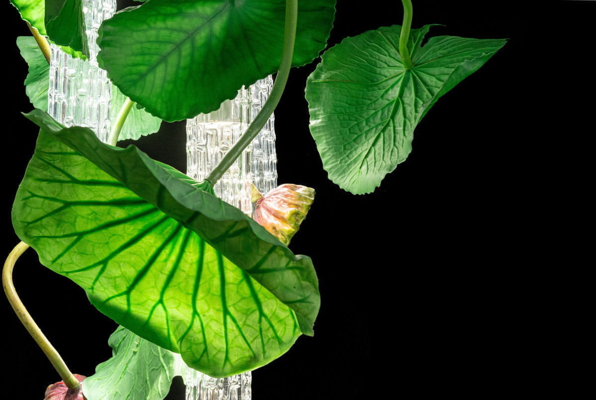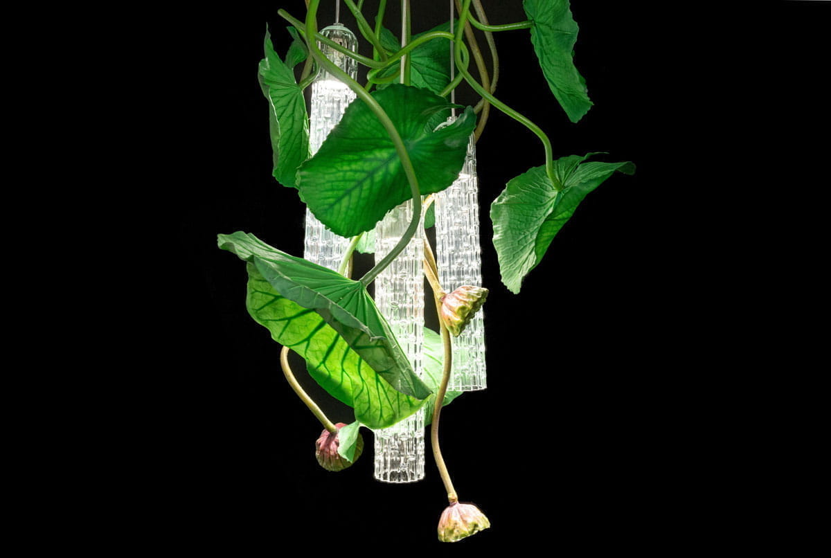 Люстра, лимфой которой является воображение, та самая, которая перевернула предположение о вертикальности с ног на голову, корни в воздухе и стебли вниз, позволяя листьям и цветам грациозно падать, обвитые изысканным муранским стеклом. Первая Цветочная Сила рождается как ода Весне, пробуждению природы, с решительными и в то же время нежными оттенками Тюльпанов.