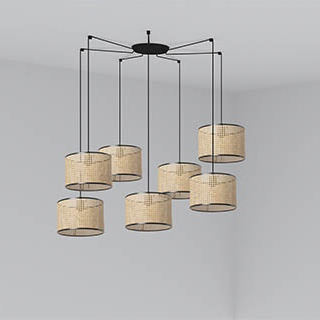🆔 Подвесной светильник с семью абажурами из ротанга Матовый черный MAMBO by Faro Barcelona