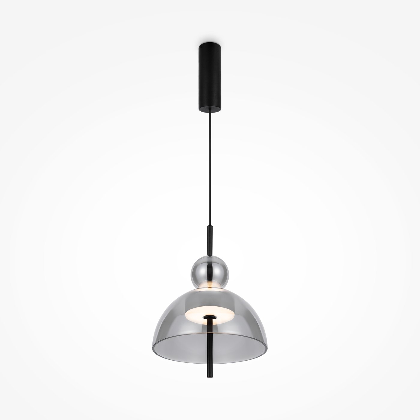 🆔 Подвесной светильник с куполообразным металлическим плафоном серебристого оттенка черный Bangkok by Maytoni