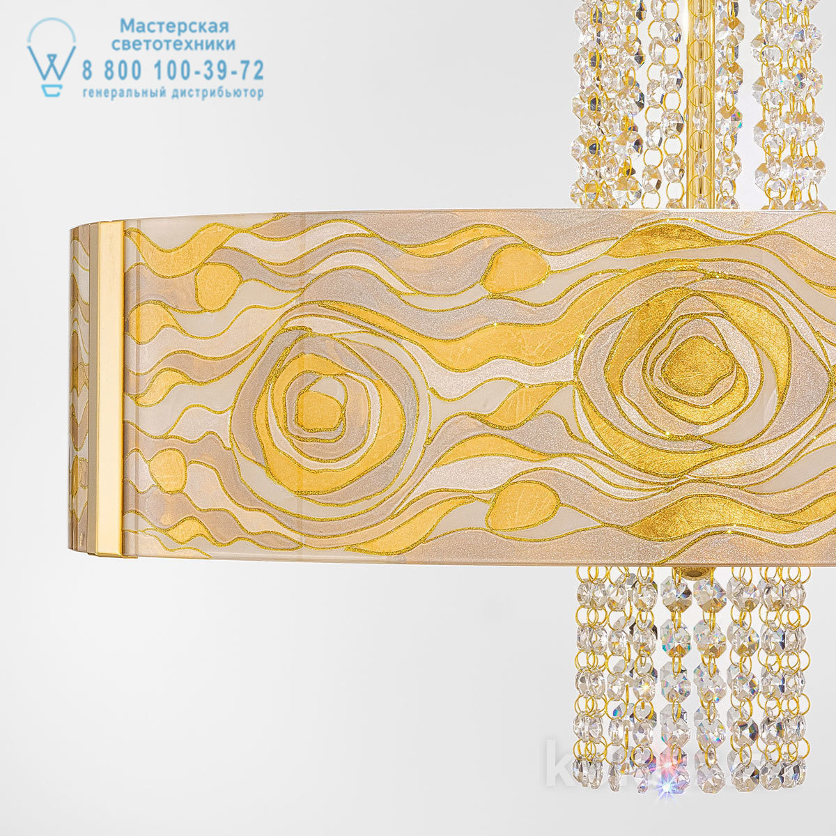 EMOZIONE: exclusive lighting, designed to create amazing ambience, breathtaking glamour and brilliant blaze of light. Geometric shapes and a sparkling rain of crystals meet precious materials. Finest artwork, various hand-painted decors. Our hand-painted AQUA CHAMPAGNE decor shows a splendid flow of colours and shapes in harmony with finest leaf gold. Each piece of art is unique.