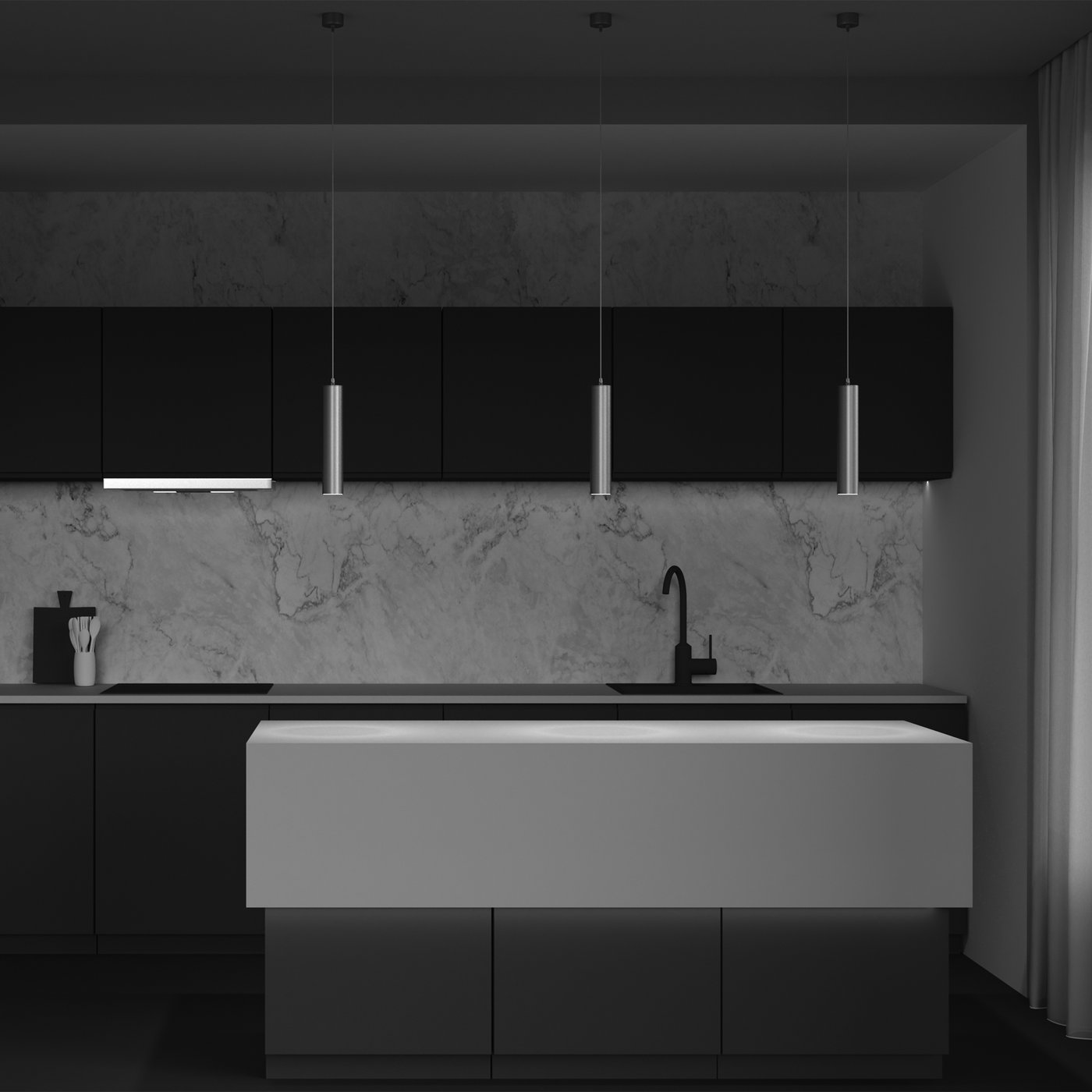 Maytoni Focus P075PL-01MG — подвесной светильник в формате тонкой световой «колонны», где вся выразительность построена на пропорциях и качестве отделки: матовое золото выглядит сдержанно и дорого, без лишнего блеска, а лаконичный цилиндр даёт чистую вертикаль в интерьере. Он особенно уместен в современных кухнях и столовых, над барной стойкой, у прикроватной зоны или в группе подвесов над островом, когда нужен точный локальный свет и аккуратный ритм. Компактный диаметр 60 мм делает модель визуально лёгкой, а регулировка высоты подвеса от 330 до 1330 мм позволяет точно настроить посадку под потолок и масштаб помещения. Светильник рассчитан на лампу GU10 мощностью до 10 Вт, поэтому характер света можно подобрать под задачу — от тёплого вечернего до более нейтрального рабочего, сохраняя единый дизайн. Глубокая посадка источника внутри корпуса помогает избежать слепящего эффекта и делает свет более собранным, особенно над столешницей или столом. Миниатюрная потолочная чаша диаметром 60 мм выглядит аккуратно и не перегружает потолок, даже если подвесов несколько. Алюминиевый корпус держит форму и даёт ощущение качественной сборки, а степень защиты IP20 подчёркивает интерьерное назначение для сухих помещений, где важны точность и спокойная эстетика.