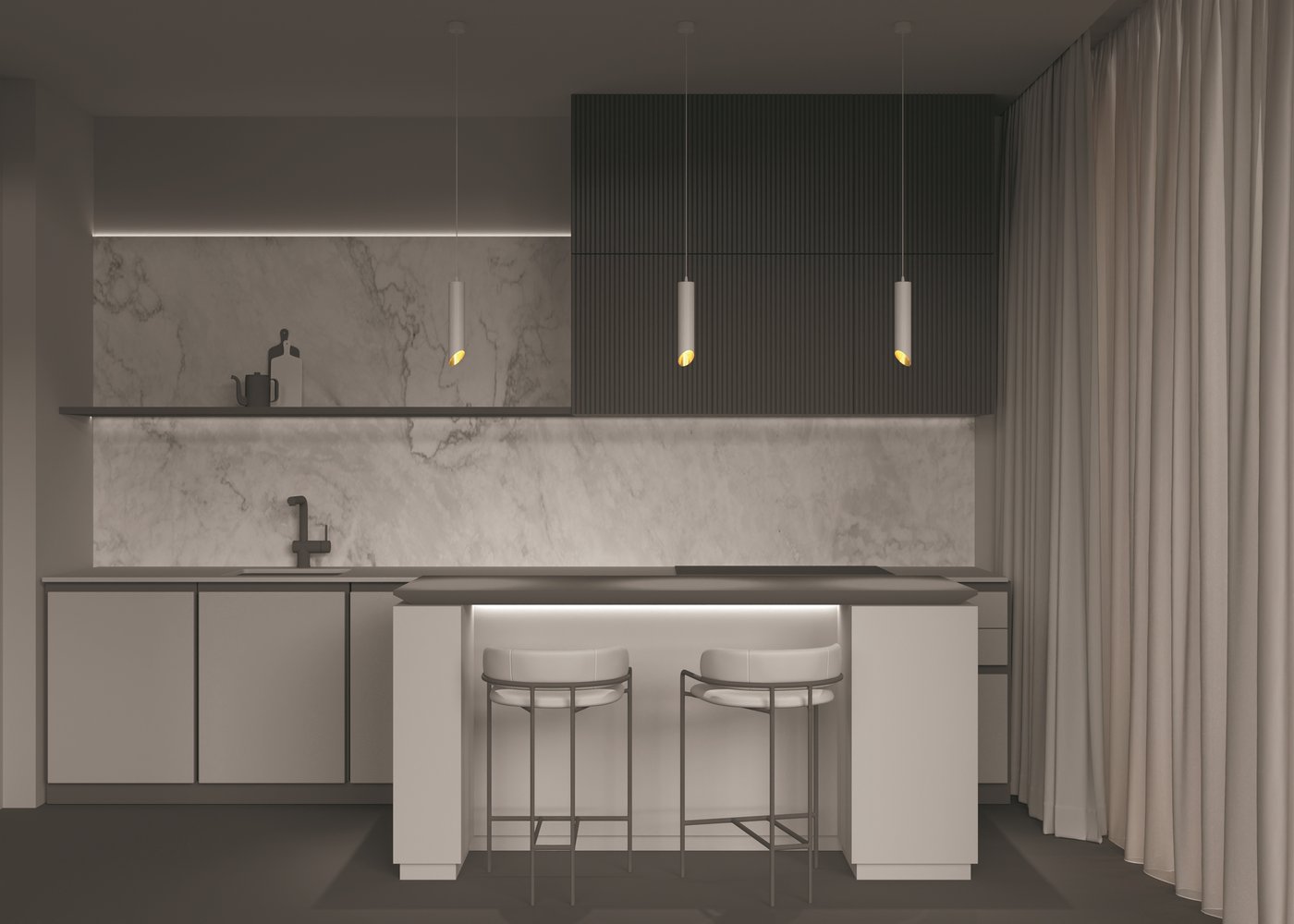 Maytoni Lipari — подвесной светильник в формате тонкого светового цилиндра, где строгая белая поверхность дополнена деликатным золотым акцентом и выглядит как точная деталь интерьерной композиции. Его характер — минимализм с ювелирной ноткой: светильник не требует внимания к себе, но добавляет интерьеру собранность и ощущение продуманного проекта. Такая модель особенно уместна в современных пространствах, где важны ритм и точечные световые акценты: над барной стойкой, кухонным островом, прикроватной зоной или в группе из нескольких подвесов над длинным столом. Минимальная высота подвеса 430 мм позволяет корректно посадить светильник даже при стандартных потолках, а компактная потолочная чаша диаметром 60 мм сохраняет чистую линию на потолке. Патрон GU10 даёт возможность подобрать лампу под задачу — от узкого акцента до более мягкого света, а мощность до 10 W делает модель экономичной и удобной для многоточечных композиций. Алюминиевый корпус сохраняет чёткую геометрию и аккуратный внешний вид со временем, что особенно важно для светильников, которые устанавливают в серии. Степень защиты IP20 рассчитана на сухие жилые пространства и позволяет использовать Lipari как точный инструмент зонирования без лишней сложности.