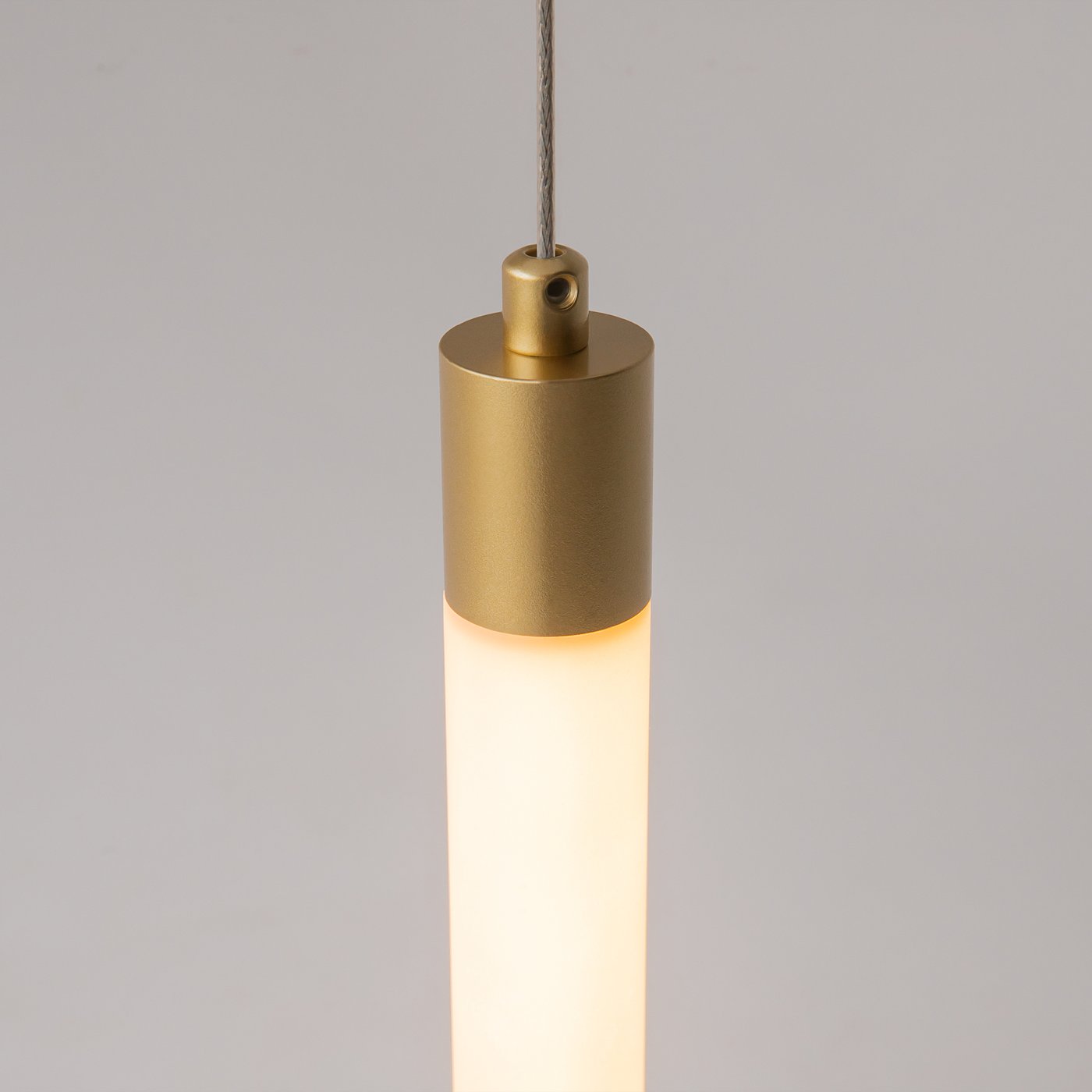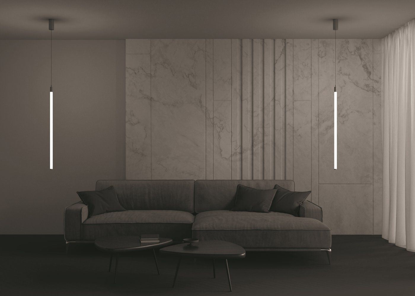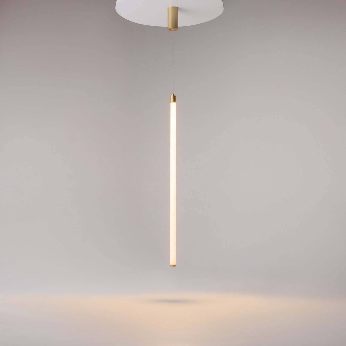 Подвесной светильник выполнен в виде тонкого вертикального цилиндра на регулируемом проводе, где световой элемент скрыт внутри узкого акрилового корпуса и воспринимается как светящаяся линия в пространстве. В коллекции Ray бренда Maytoni такая форма используется для создания направленного, но визуально лёгкого решения, которое почти не имеет «корпуса» в привычном смысле. В реальном интерьере подвес работает как локальное освещение над столом, барной стойкой или в группе из нескольких штук над проходной зоной, когда свет буквально «прорезает» пространство сверху вниз. При движении человека под светильником свет равномерно окружает объект, потому что угол излучения 360° распределяет поток по всей окружности, а не концентрирует его в одном направлении. Световой поток 2120 лм при мощности 20 Вт делает модель функциональной, а не декоративной, позволяя использовать её не только как акцент, но и как рабочий источник. Тёплая температура 3000 К смягчает яркость и делает свет комфортным для глаз, а тонкий корпус и регулируемая длина подвеса позволяют точно настроить высоту под конкретную задачу и масштаб помещения.