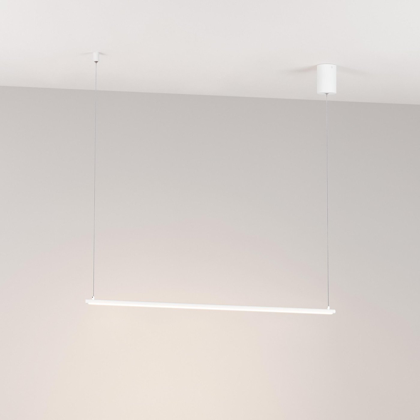 Декоративный подвесной светильник мощностью 15 Вт с дневным белым цветом свечения (4000 К). Сбалансированный минималистичный дизайн и высокая световая эффективность. Горизонтальное свечение вниз. Белый изящный корпус из металла длиной 910 мм на регулируемом тросе. Композиции из нескольких светильников будут стильно смотреться при оформлении спальных зон и гостиных. При размещении светильников возле стены создается эффект отраженного света. Регулируемая длина подвеса позволяет размещать светильники на разной высоте и подстраивать их под высоту потолков. Световой поток 531 лм и высокий индекс цветопередачи (CRI>90) для качественного освещения. Драйвер в комплекте для подключения к сети 230 В.