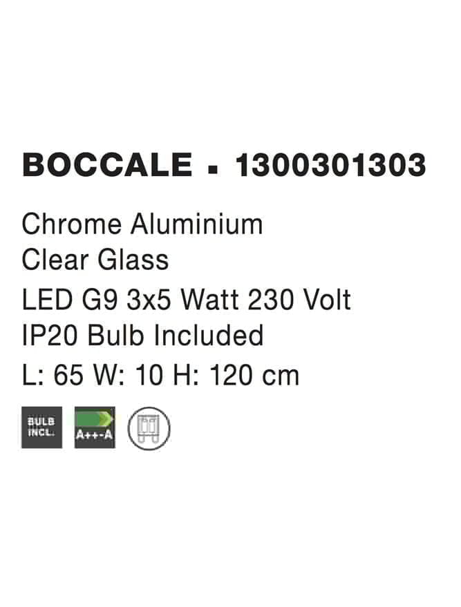 Chrome Aluminium Clear Glass G9 3x33 Watt 230 Volt IP20 Bulb Included L: 65 W: 10 H: 120 cm