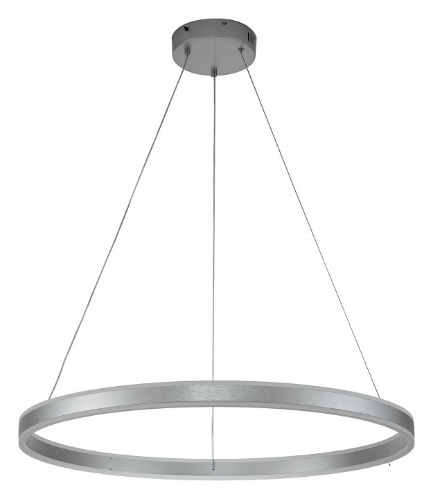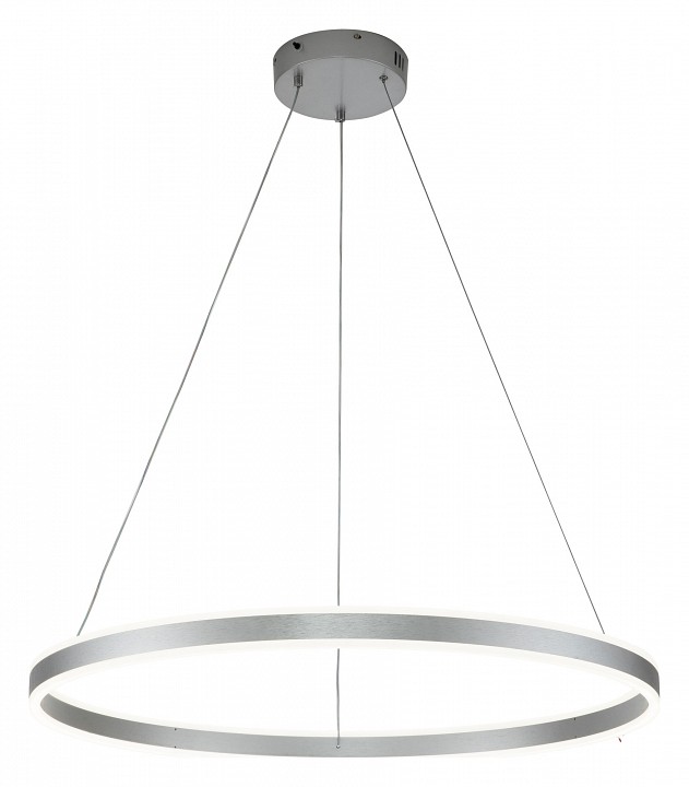 подвесной кольцевой светильник с алюминиевым корпусом серебристого цвета и мягкой подсветкой