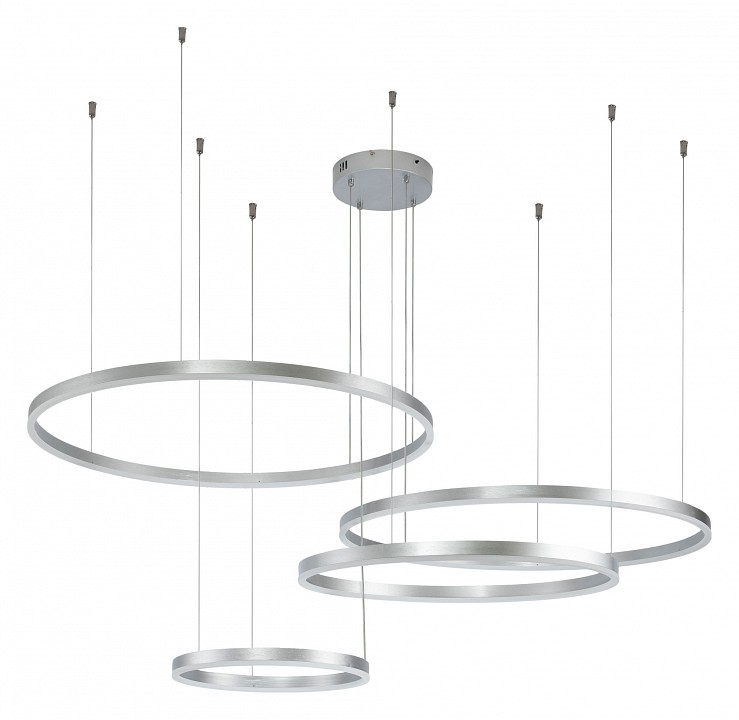 подвесной светильник с четырьмя кольцами серебристого цвета и рассеянным светом