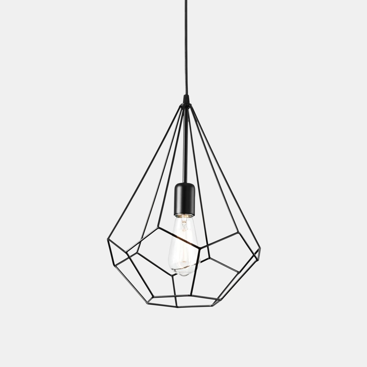 Патрон и декоративный металлический каркас с черно-белой отделкой. Регулируемая длина кабеля.