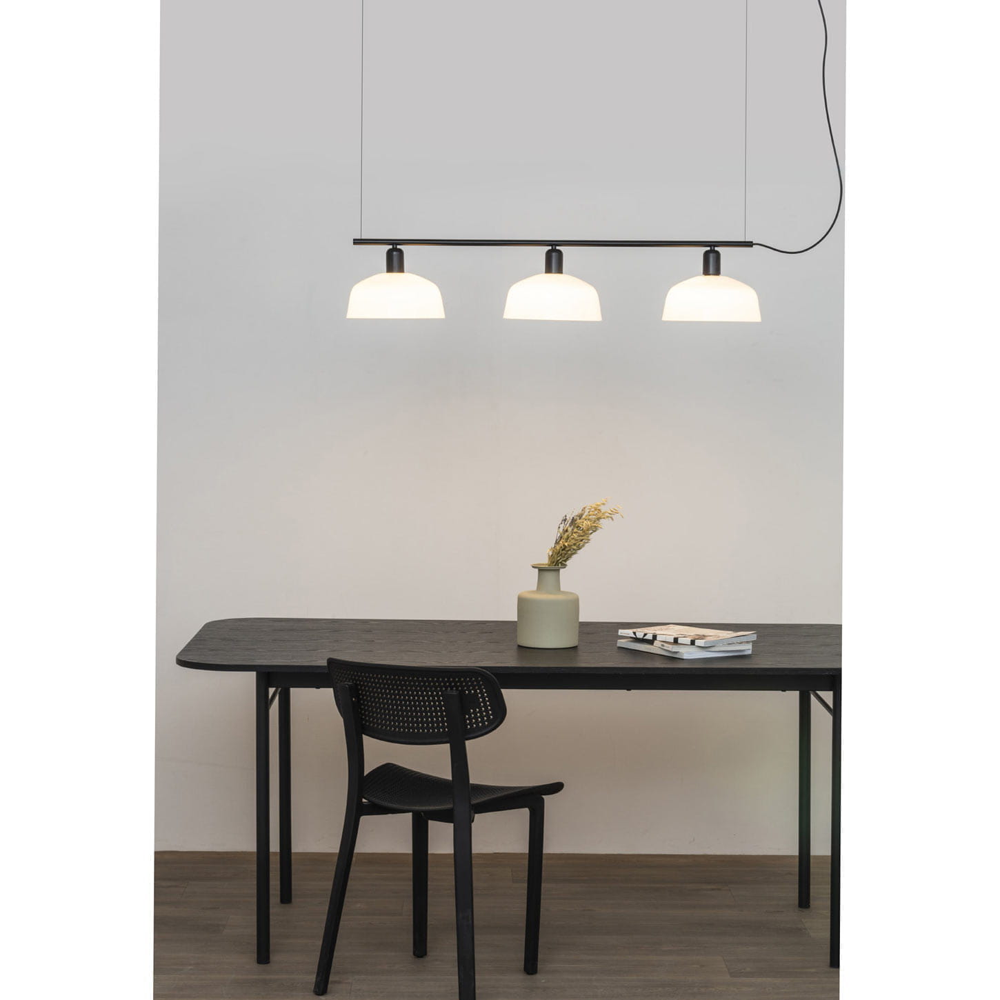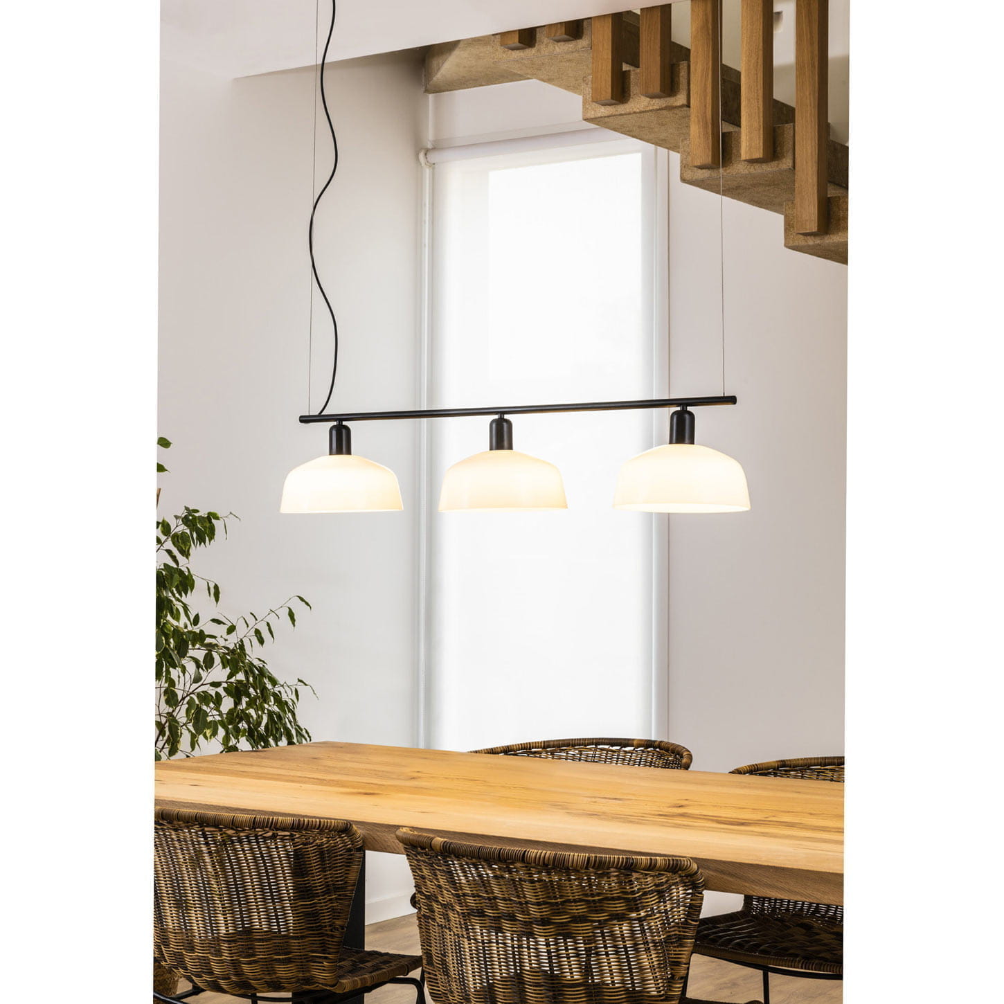 Подвесной светильник TATAWIN M от Faro Barcelona имеет минималистичный и функциональный дизайн, выполненный в матовом черном цвете с тремя рассеивателями из опалового стекла. Модель рассчитана на установку в зоне обеденного стола или рабочего пространства, где необходима равномерная и комфортная подсветка. Плафоны подвешены на длинных проводах, длина которых регулируется до 2 метров, позволяя варьировать высоту светильника в зависимости от задачи. Каждый из светильников оснащён LED-лампами E27 мощностью до 15 Вт, что дает достаточное освещение для комфортной работы или ужина без перегрева и лишнего блеска. Блоки из опалового стекла мягко рассеивают свет, создавая приятную атмосферу и исключая резкие тени.