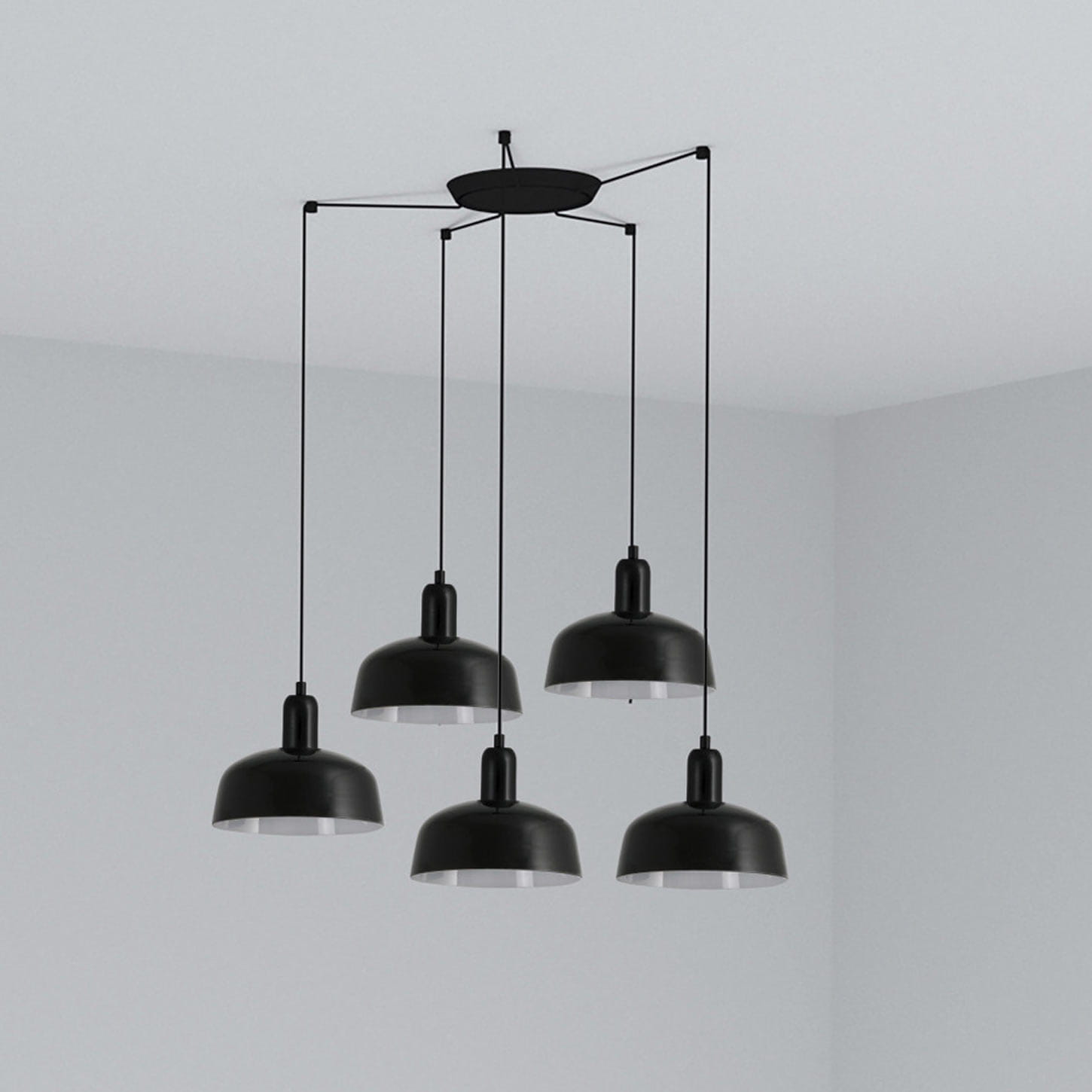 подвесной светильник чёрный с пятью плафонами