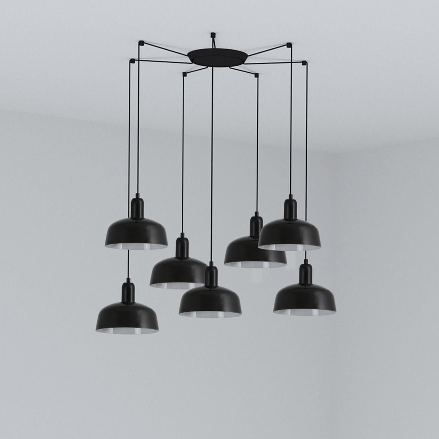 Подвесной светильник TATAWIN S 7L от Faro Barcelona с семью чёрными глянцевыми плафонами и стальной арматурой идеально подходит для создания яркого и равномерного освещения в больших помещениях. Этот светильник идеально подойдёт для использования над столами, в зонах с интенсивной активностью, а также в коммерческих интерьерах, таких как кафе или рестораны. Плафоны из стекла сосредотачивают свет вниз, минимизируя рассеяние и обеспечивая точечное освещение. Светильник использует лампы E27 LED мощностью до 15 Вт, что позволяет снизить энергопотребление и обеспечить долговечность работы. С длиной кабеля 5000 мм и защитой IP20, он подходит для эксплуатации в помещениях с различной высотой потолков и в сухих условиях.