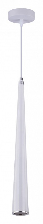 Подвесной светильник предназначен для локального освещения интерьера и закрепляется к потолку с помощью регулируемого подвеса, что позволяет изменять высоту подвеса под нужный уровень освещения. Конусная форма корпуса создает направленный поток света вниз, обеспечивая фокусированное освещение. Источник света встроенный с мощностью 5 Вт и световой температурой 4000K, обеспечивающей нейтральное дневное освещение, световой поток 450 лм. Корпус выполнен в сером цвете, с узким и удлинённым силуэтом, визуально минималистичным, без декоративных элементов. Основные конструктивные признаки — регулируемая длина подвеса, конусная форма и компактный потолочный крепёж, позволяющие интегрировать светильник в различные помещения, сохраняя акцент на функциональности и точечном освещении.
