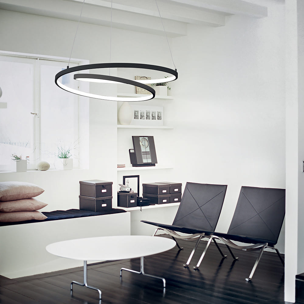 🆔 Подвесной светильник с двойным кольцом в чёрном цвете черный Off by Ideal lux
