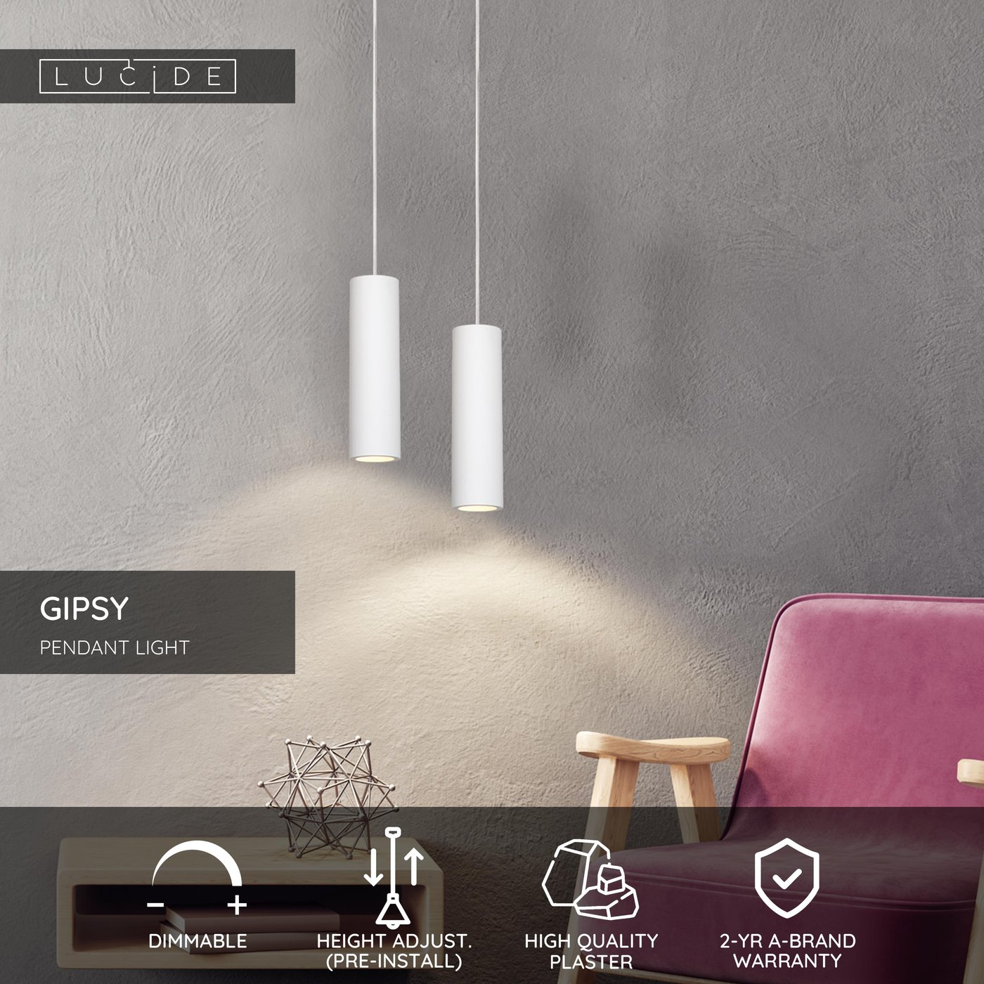 🆔 Подвесной светильник цилиндрической формы с одним плафоном белый GIPSY by Lucide