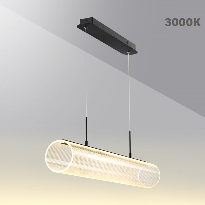 Подвесной светильник Novotech Over из коллекции Over выполнен в современном стиле с использованием светодиодных технологий для создания мощного и энергоэффективного освещения. Модель имеет цилиндрическую форму, с длиной 800 мм и шириной 120 мм, что позволяет использовать её для освещения больших пространств, например, в гостиных, кабинетах или холлах. Светильник оснащен регулируемой температурой света в диапазоне от 3000 до 6000 К, что позволяет легко настроить теплое или холодное освещение в зависимости от времени суток и настроения. Световой поток в 2800 лм и высокое значение светотдачи (78 лм/Вт) обеспечивают яркое и равномерное освещение, при этом светильник поддерживает диммирование, что делает его универсальным решением для различных нужд. Матовая черная арматура и прозрачный плафон с полимерным покрытием идеально сочетаются, создавая стильный элемент интерьера, а степень защиты IP20 подходит для использования в сухих помещениях.