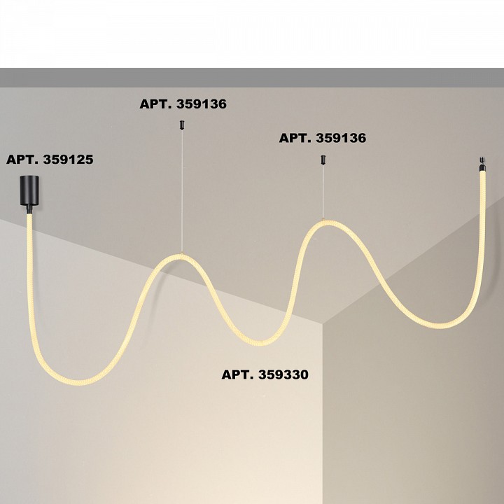 Подвесной светильник Ramo от Novotech с длинной белой лентой, заключённой в гибкий корпус, представляет собой современное решение для создания основного освещения в помещениях. Его длина в 3 метра и мощность 38 Вт обеспечивают равномерный световой поток в 2688 Лм, что позволяет освещать большие зоны, например, гостиные или кабинеты. Светильник выполнен в тёплом белом свете с температурой 3000 К, создавая мягкую и уютную атмосферу. Он идеально подходит для помещений с высокими потолками, где необходима хорошая яркость и равномерное распределение света. Несмотря на гибкость конструкции, светильник не имеет функции диммирования, а степень защиты IP20 указывает на его предназначение для использования в помещениях с сухими условиями.