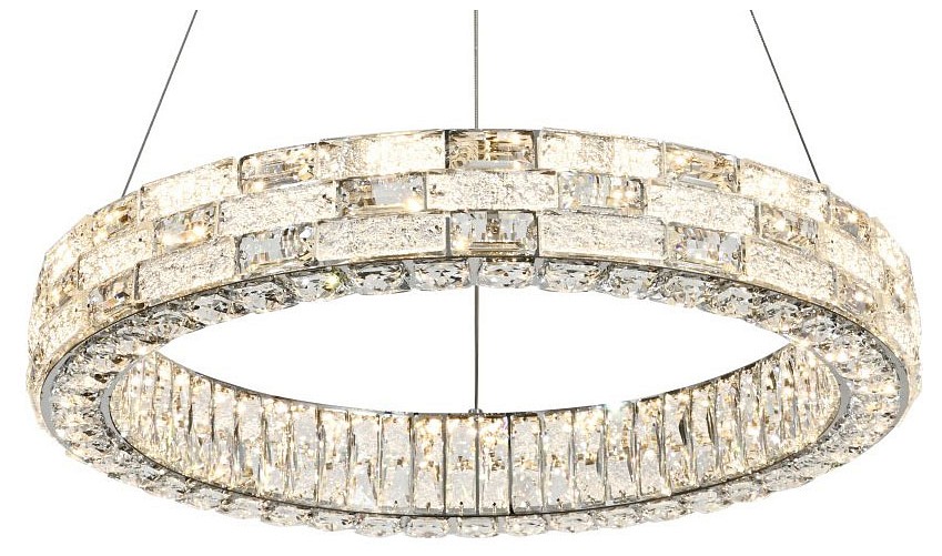 подвесной светильник с кольцевыми хрустальными элементами хром