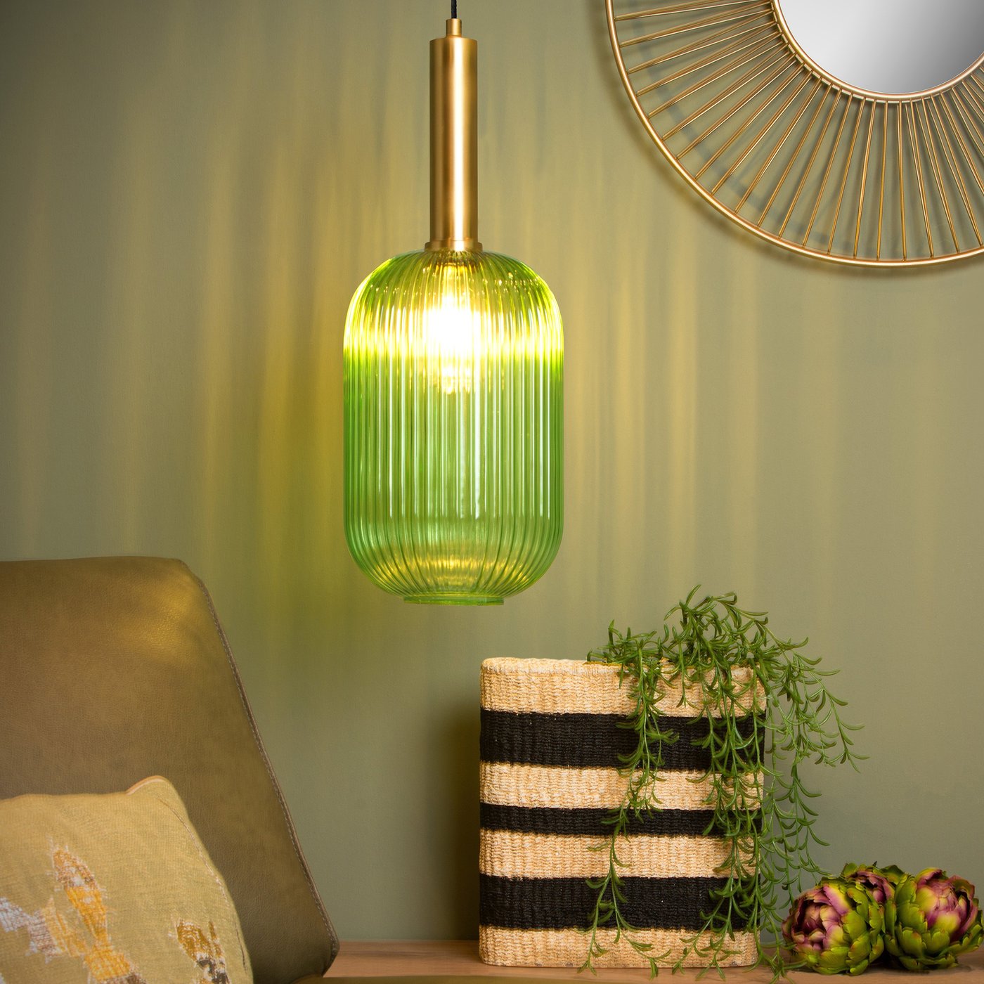 Ретро-акцент в вашем интерьере? Не ищите дальше. С Maloto вы нашли подвесной светильник, который добавит вашему дому яркости и красок, а также ретро-нотку. Всё выглядит стильно благодаря цилиндрическому стеклянному абажуру, золотистым акцентам и изысканному дизайну. Сочетайте янтарный и зелёный варианты для создания уникального эффекта. Подвесные светильники регулируются по высоте от 50 до 150 сантиметров. Благодаря этому Maloto впишется в интерьер гостиной, прихожей, столовой или спальни. Вы можете легко подключить подвесной светильник к диммеру.