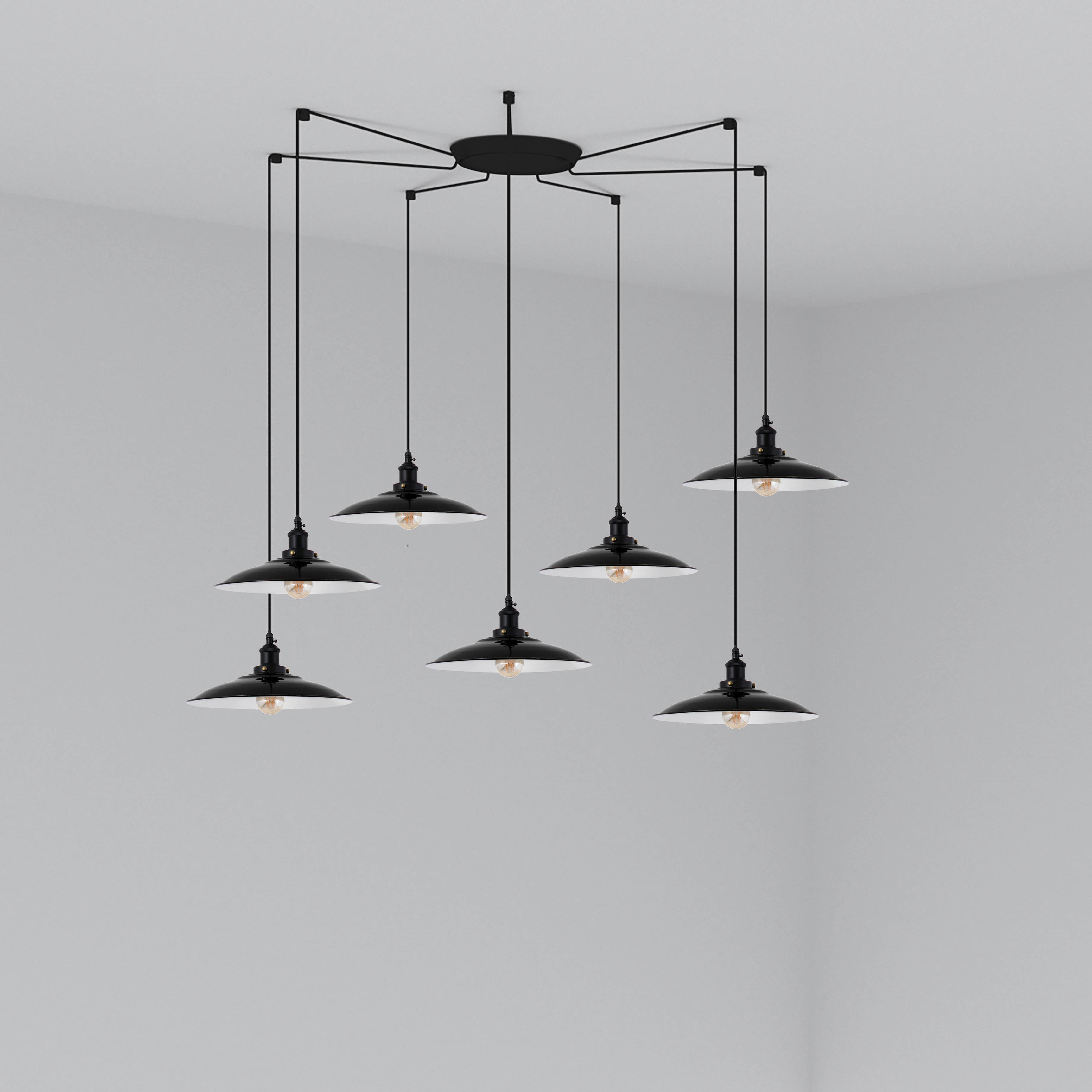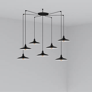 подвесной светильник черный с семью плафонами