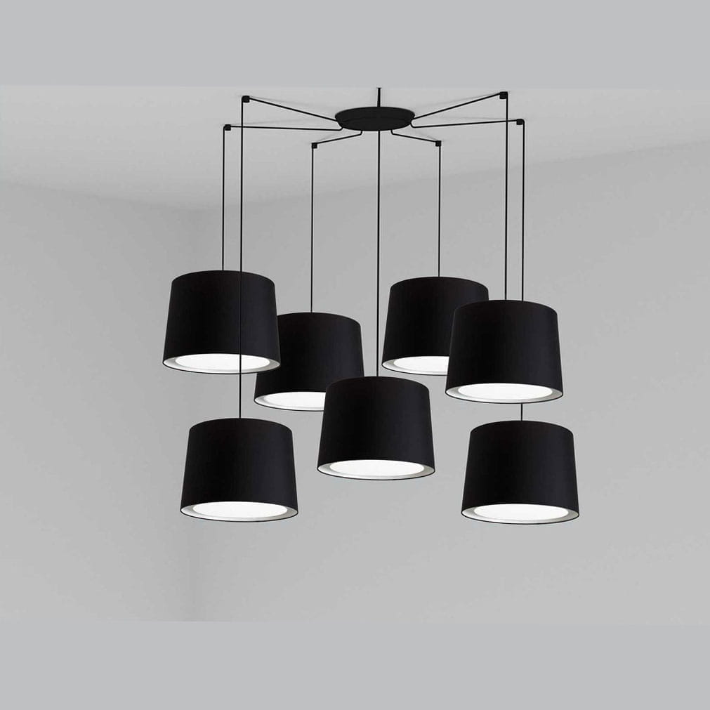 потолочный светильник с семью черными абажурами