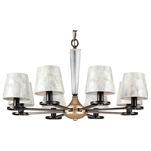 Этот подвесной светильник в классическом стиле выполнен в черном и золотом цветах с текстильными плафонами светло-серого оттенка. Он оснащен 8 лампами с цоколем E14, поддерживающими как накаливание, так и светодиоды, с максимальной мощностью лампы 40 Вт. Общая мощность светильника составляет 320 Вт, что позволяет эффективно освещать большие помещения, такие как гостиные. Плафоны имеют овальную усеченную форму, направленную вниз, и выполнены из текстиля, в то время как арматура из металла и с глянцевыми, матовыми элементами. Светильник монтируется на потолке, регулируется по высоте и работает при температуре от +1 до +35 °C. Класс защиты IP20 ограничивает использование в сухих помещениях.