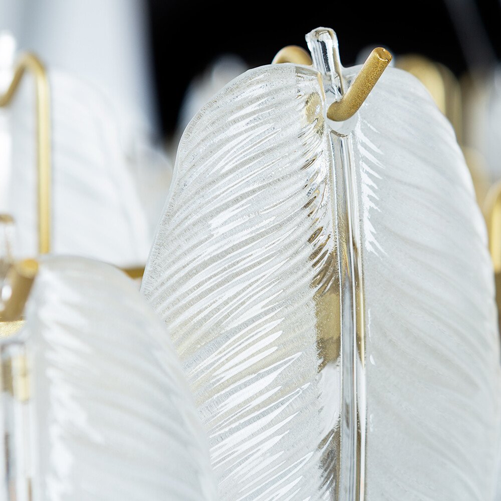Подвесная люстра Arte Lamp Evie A4052SP-12SG — эффектный декоративный светильник в стиле флористика, созданный как выразительный акцент для просторных интерьеров. Модель выполнена в виде широкой композиции из прозрачных рельефных стеклянных элементов, напоминающих изящные лепестки, которые мягко рассеивают свет и формируют богатую игру бликов. Глянцевая металлическая арматура в золотом цвете подчёркивает утончённость формы и добавляет интерьеру нотки роскоши. Люстра имеет диаметр 800 мм и высоту 220 мм, что делает её идеальным центральным источником света для гостиной, кабинета или спальни. Конструкция рассчитана на 12 ламп с цоколем E14 мощностью до 40 Вт каждая (лампы в комплект не входят), при использовании диммируемых источников возможна регулировка яркости. Крепление осуществляется на монтажной пластине, обеспечивая надёжную фиксацию на потолке. Arte Lamp Evie гармонично вписывается в интерьеры с декоративной направленностью, сочетая воздушность стекла и благородство металлической отделки.