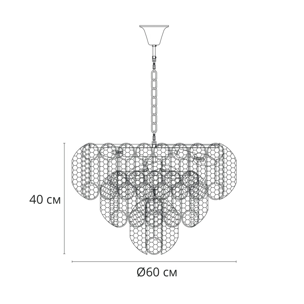 Подвесная люстра Arte Lamp Evelyn выполнена в современном стиле и отличается выразительной многоярусной композицией из стеклянных элементов. Конструкция основана на металлической арматуре с глянцевой медной отделкой и дополнена прозрачными неокрашенными стеклянными плафонами с плавной рельефной формой, создающими объёмный и светлый визуальный эффект. Модель рассчитана на двенадцать ламп с цоколем E14 мощностью до 40 Вт каждая, при этом лампы в комплект не входят и могут быть накаливания или светодиодными. Общая мощность светильника составляет 480 Вт, что позволяет использовать его как основной источник освещения в помещении. Диаметр люстры равен 600 мм, высота — 400 мм, благодаря чему она гармонично смотрится в пространстве гостиной или столовой зоны. Крепление осуществляется на крюке, предусмотрена возможность диммирования. Люстра предназначена для потолочного размещения и органично дополняет современные жилые интерьеры.