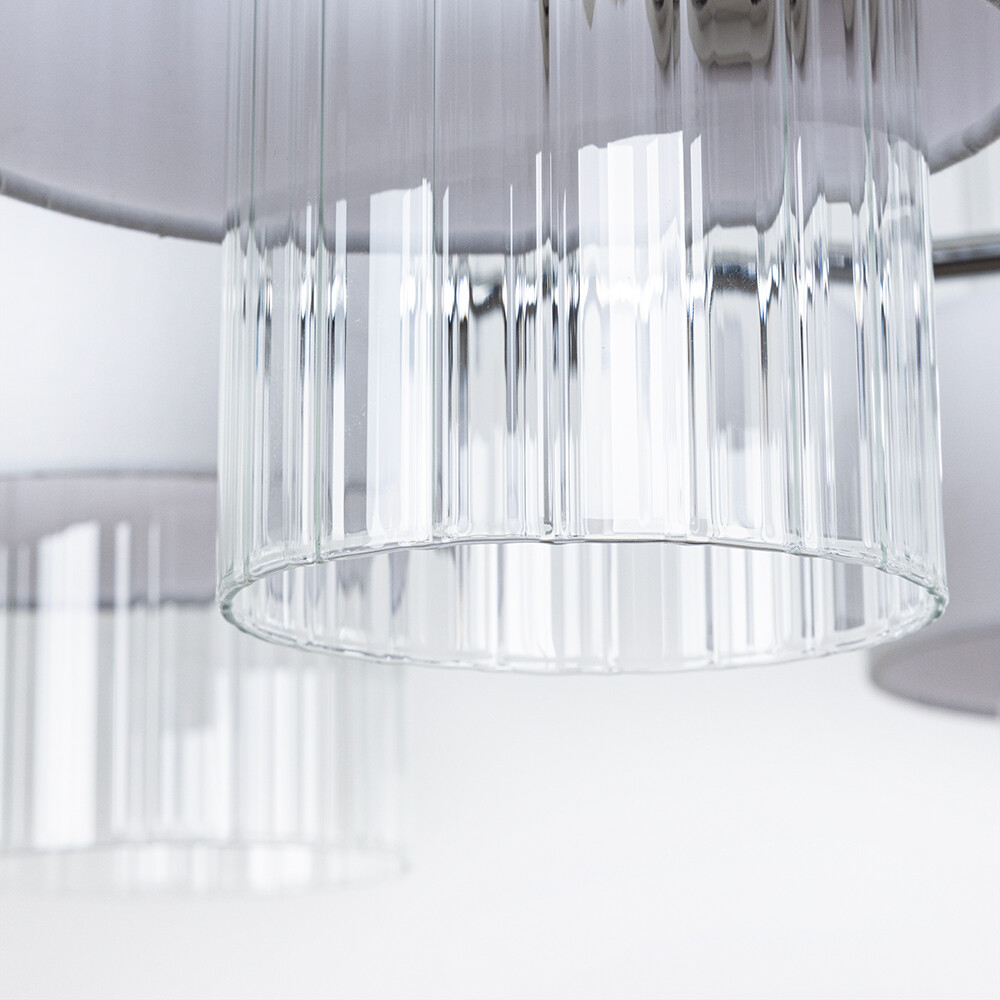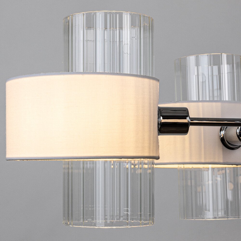 Подвесная люстра Arte Lamp Fantasia выполнена в современном стиле и отличается лёгкой, сбалансированной композицией. Конструкция основана на металлической арматуре с глянцевой хромированной отделкой и дополнена пятью цилиндрическими плафонами, сочетающими матовый белый текстиль и прозрачные неокрашенные стеклянные элементы. Такое сочетание материалов обеспечивает мягкое рассеянное освещение с направлением света вверх и вниз. Модель рассчитана на пять ламп с цоколем E14 мощностью до 40 Вт каждая, при этом лампы в комплект не входят и могут быть накаливания или светодиодными. Общая мощность светильника составляет 200 Вт, что позволяет использовать его как основной источник света в помещении. Диаметр люстры равен 700 мм, высота — 220 мм, благодаря чему она гармонично вписывается в пространство гостиной или столовой зоны. Крепление осуществляется на монтажной пластине, предусмотрена возможность диммирования, что делает модель функциональным элементом современного интерьера.