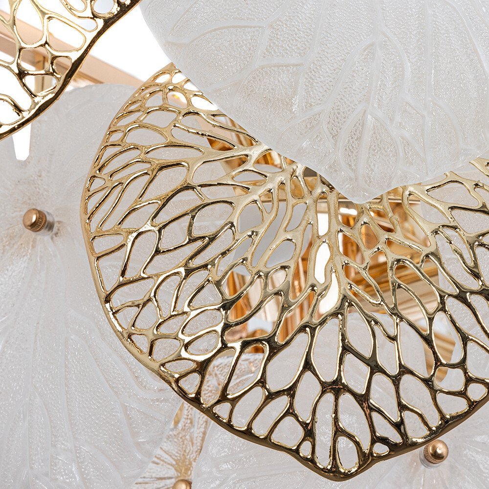 Подвесная люстра Arte Lamp Kapri A4078LM-12GO — эффектная модель в современном стиле, созданная как центральный акцент интерьера. Дизайн вдохновлён природными формами: плафоны выполнены в виде многослойных лепестков, сочетающих прозрачное и золотистое стекло с декоративными металлическими элементами. В результате люстра выглядит воздушной и при этом выразительной, особенно в включённом состоянии, когда свет красиво преломляется через фактурные поверхности. Модель рассчитана на 12 ламп с цоколем E14 мощностью до 40 Вт каждая (лампы в комплект не входят). Поддерживается использование ламп накаливания или светодиодных источников, предусмотрена возможность диммирования. Общая максимальная мощность составляет 480 Вт, что позволяет эффективно освещать просторные помещения. Габариты люстры: диаметр 600 мм, высота 450 мм. Крепление осуществляется на монтажной пластине, степень защиты — IP20. Арматура выполнена из металла с глянцевым золотым покрытием, плафоны — из стекла и металла с глянцевой прозрачной поверхностью. Люстра предназначена для потолочного размещения и идеально подойдёт для гостиной, кабинета или спальни, где требуется не только качественное освещение, но и яркий декоративный элемент. Производство — Италия.