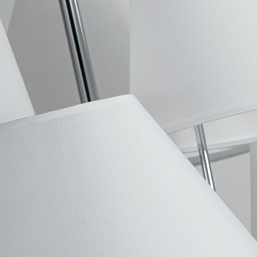 Подвесная люстра Arte Lamp Rondo выполнена в современном стиле и отличается чёткой симметричной композицией с выразительной, но сдержанной геометрией. Конструкция основана на металлической арматуре с глянцевой хромированной поверхностью и дополнена шестью текстильными плафонами белого цвета с матовой фактурой. Плафоны имеют усечённую коническую форму и направляют световой поток вверх и вниз, обеспечивая равномерное и комфортное освещение пространства. Модель рассчитана на шесть ламп с цоколем E14 мощностью до 40 Вт каждая, лампы в комплект не входят, а суммарная мощность составляет 240 Вт. Диаметр люстры составляет 850 мм при высоте 470 мм, что делает её подходящей для использования в просторных жилых помещениях. Крепление осуществляется на монтажной пластине, обеспечивая аккуратное потолочное размещение. Люстра предназначена для гостиных, кабинетов и спален и органично вписывается в современные интерьерные решения.