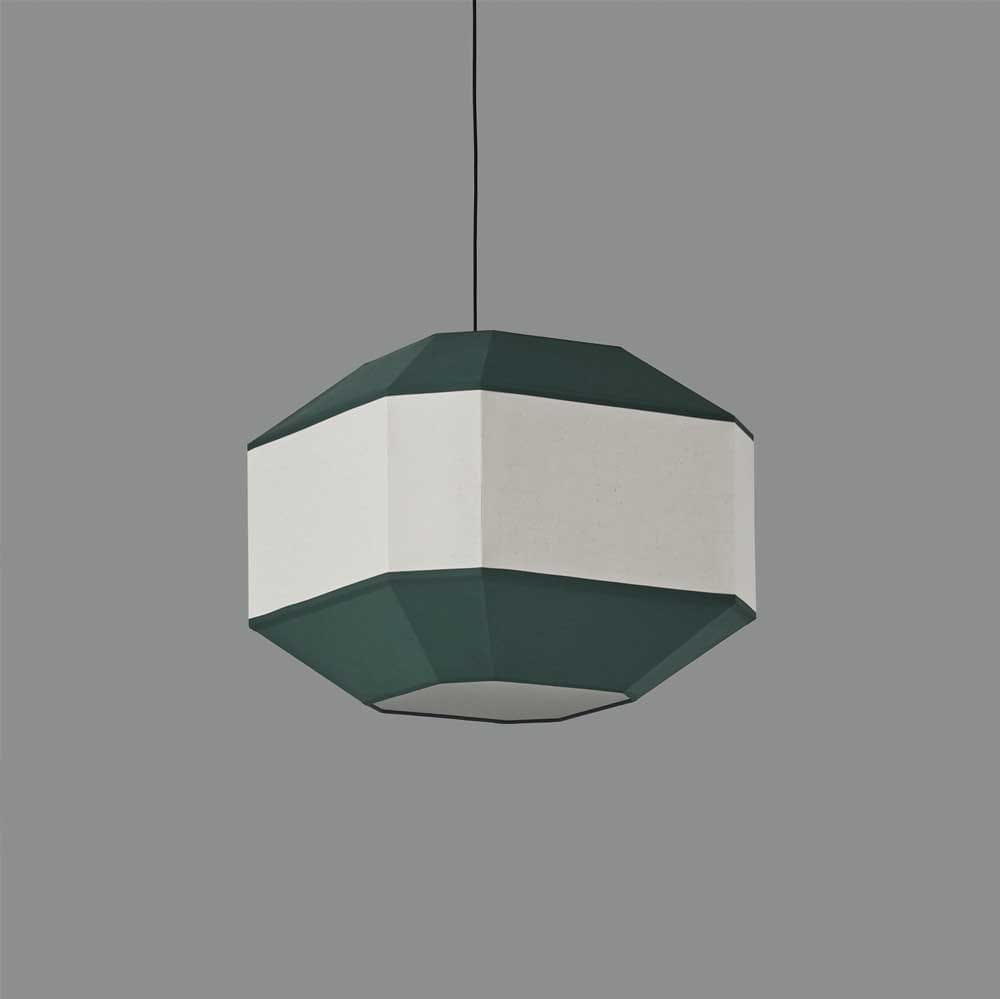 подвесной светильник зелёного цвета с текстильным абажуром