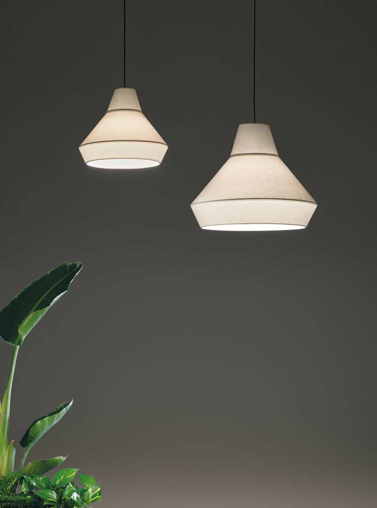 подвесной светильник белого цвета с текстильным абажуром