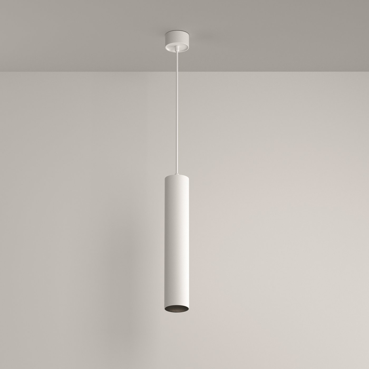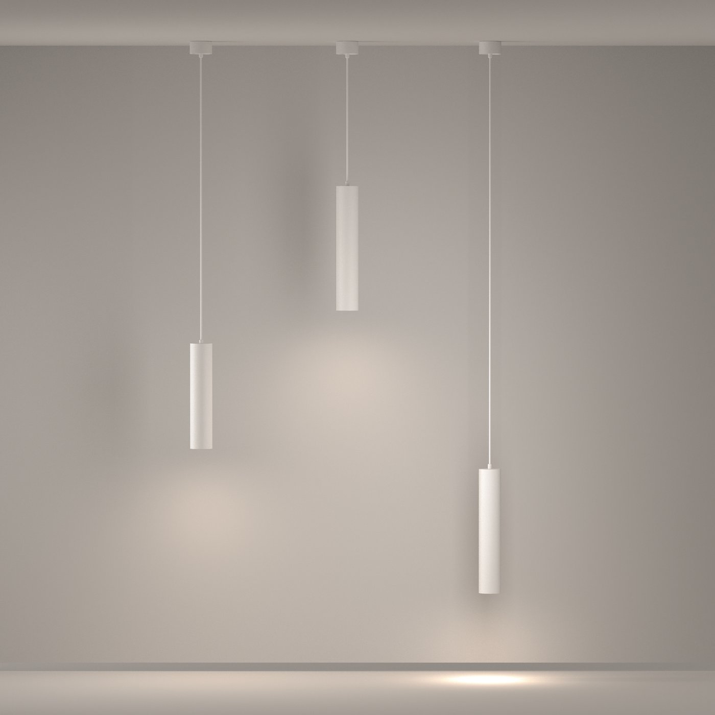 Подвесной светильник выполнен в виде узкого алюминиевого цилиндра длиной около 300 мм с утопленным источником света и аккуратным фиксирующим кольцом, скрывающим кромку лампы. В коллекции Maytoni Artisan такая конструкция рассчитана на направленный поток вниз, поэтому светильник работает как локальное освещение над столом, барной стойкой или прикроватной зоной. В реальном сценарии человек может повесить модель низко над поверхностью и получить чёткое световое пятно без засветки в глаза, потому что лампа утоплена в корпус и экранирована от прямого взгляда. Формат под GU10 позволяет выбирать лампу по углу и температуре света, подстраивая характер освещения под задачу — от узкого акцента до более широкого рабочего света. Максимальная мощность 10 Вт даёт достаточную яркость при компактных размерах и без перегрева корпуса. Монтажная чаша диаметром 54 мм делает крепление визуально минимальным, а IP20 предполагает использование в сухих помещениях.