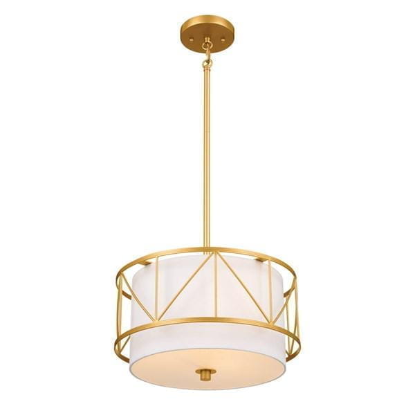 18-дюймовая трансформируемая подвеска Birkleigh/полуутопленная с абажуром из белой ткани и матовым травленым стеклом украшена простой металлической геометрической накладкой цвета Classic Gold.