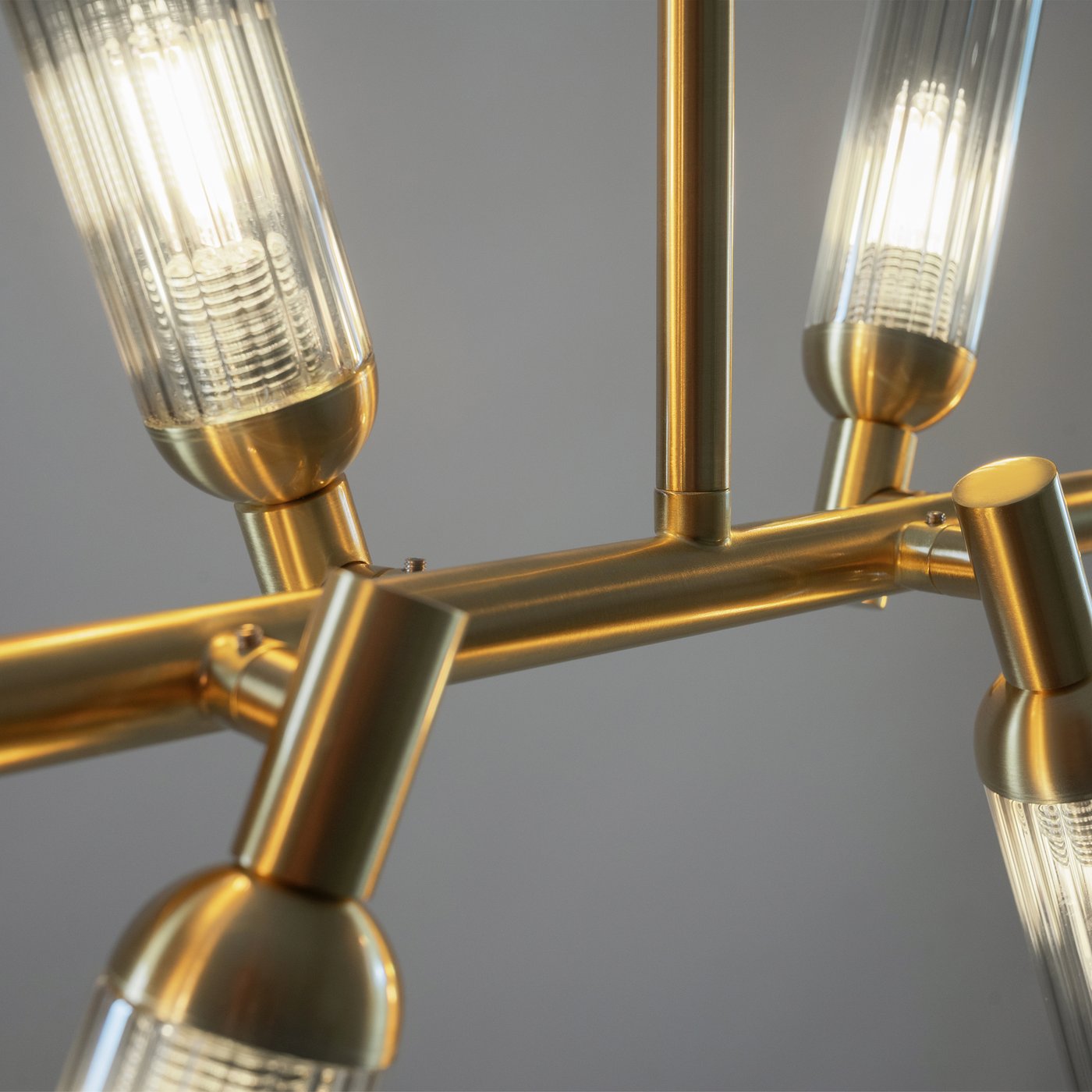 подвесной светильник с пересекающимися цилиндрами и золотой отделкой
