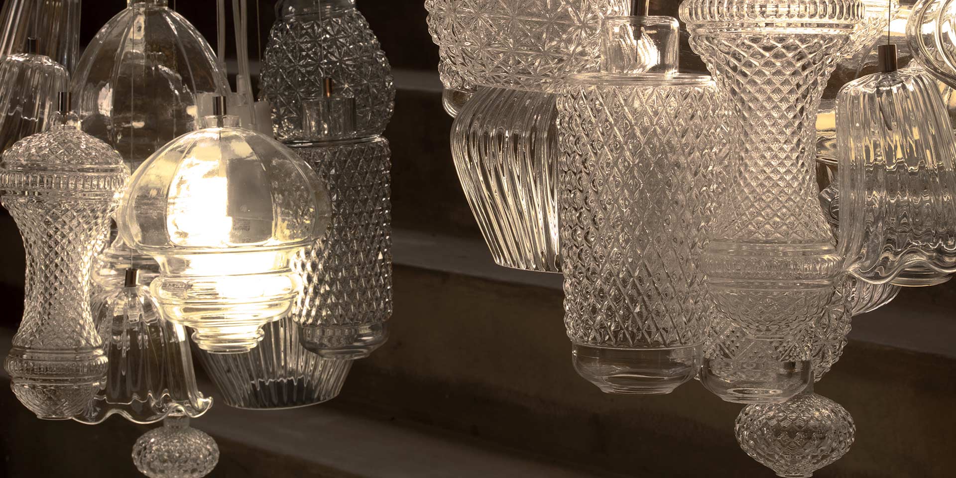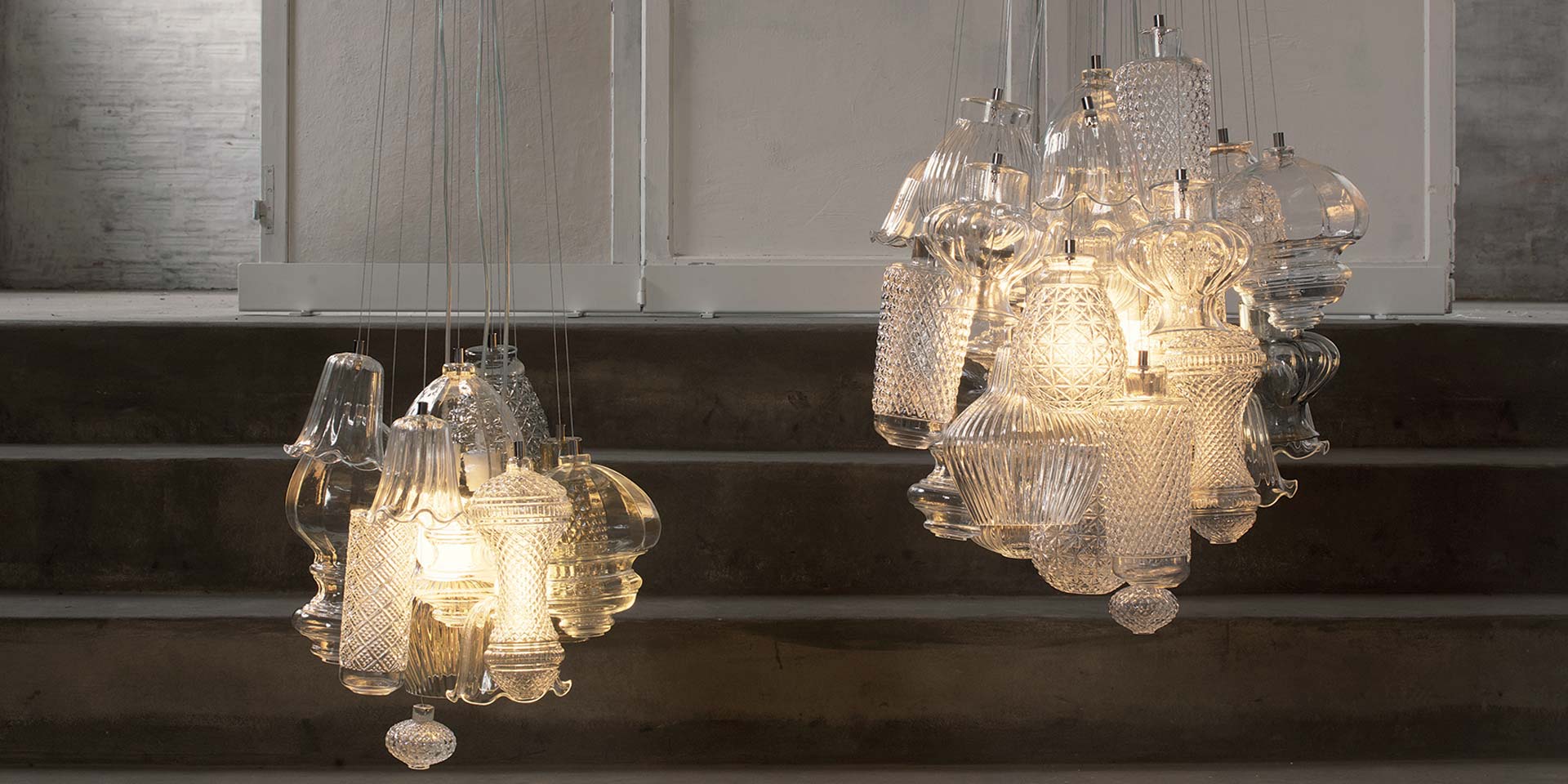 🆔 Подвесная люстра с множеством голубых плафонов в форме кристаллов Ceraunavolta by Karman