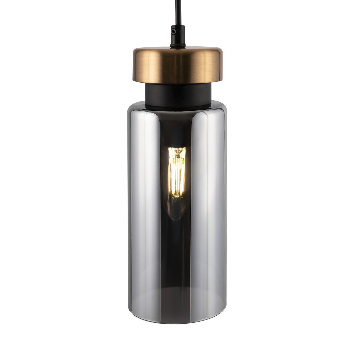 🆔 Подвесной светильник с вытянутым цилиндрическим плафоном из прозрачного стекла с золотистыми акцентами золотой, черный Come by Freya
