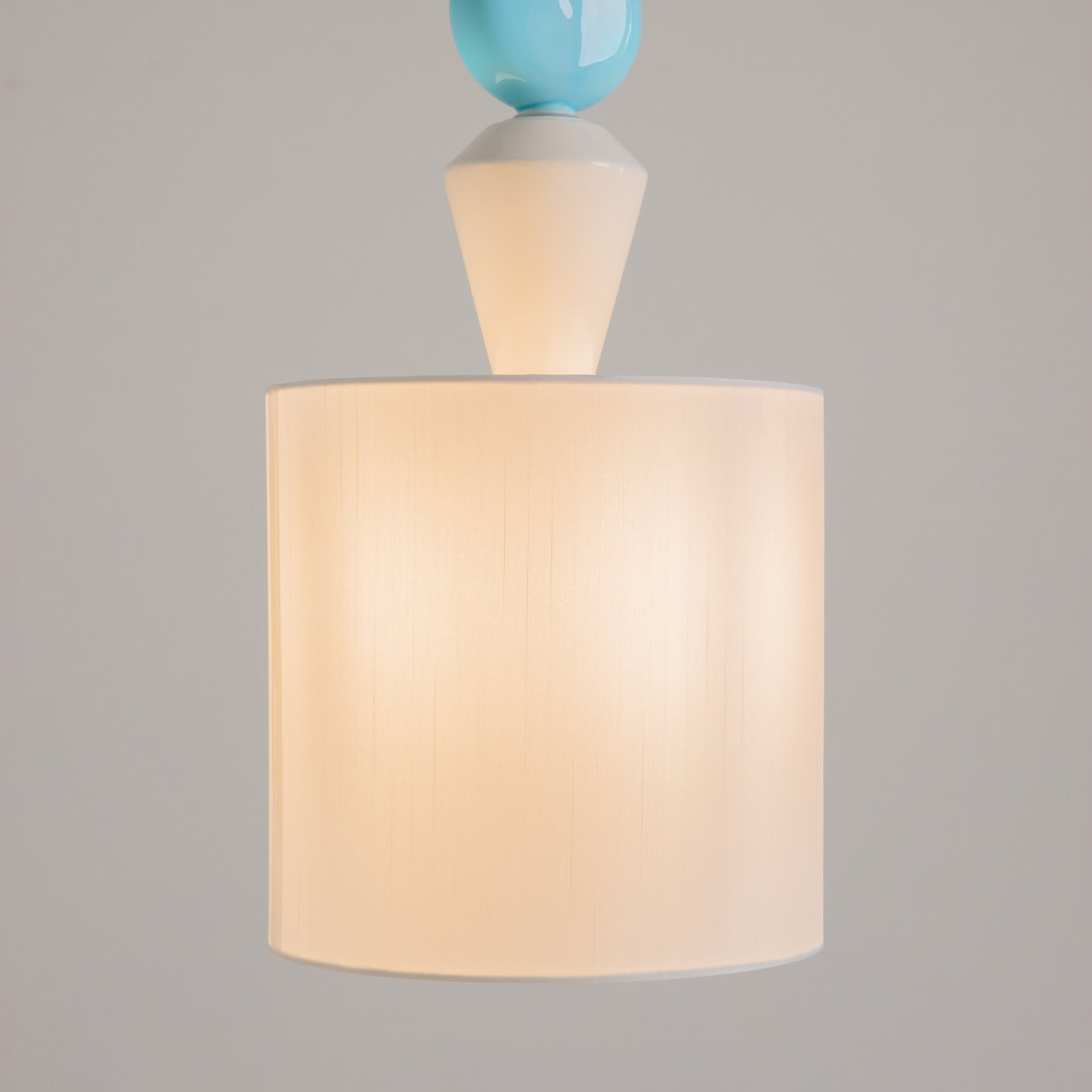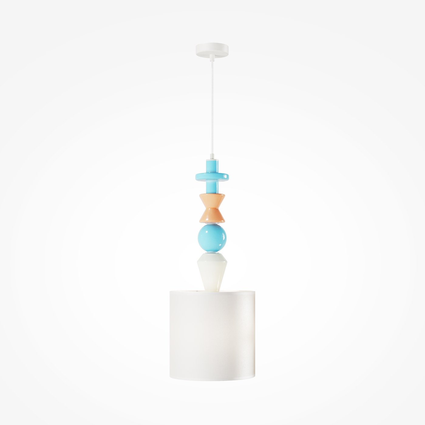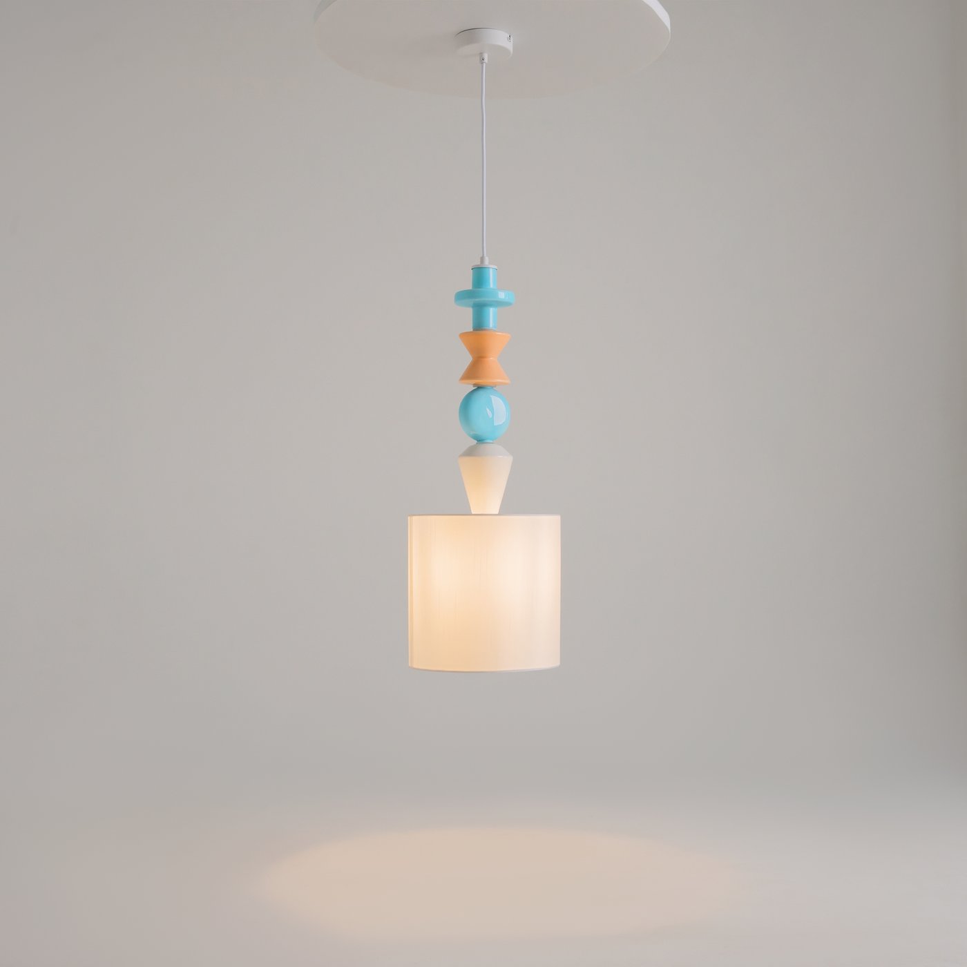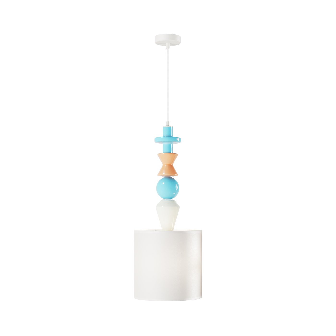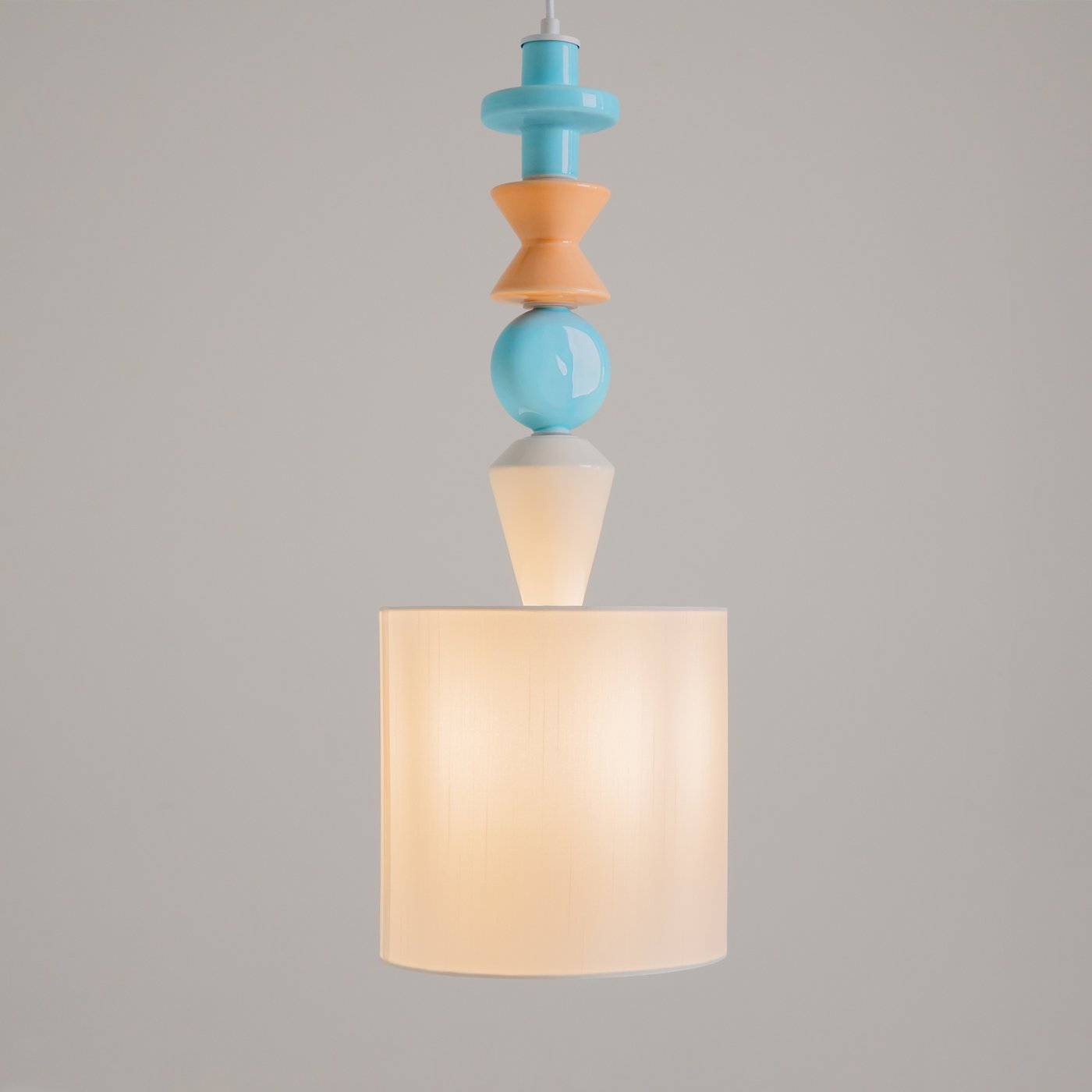 подвесной светильник с цилиндрическим абажуром и декоративными элементами пастельных оттенков