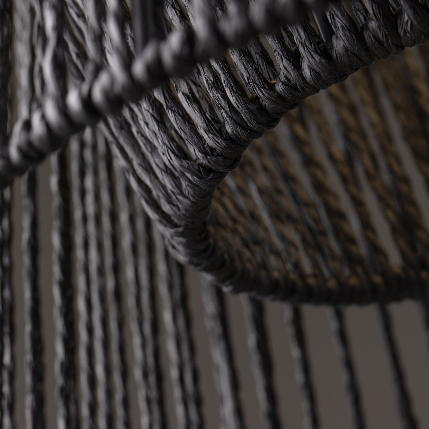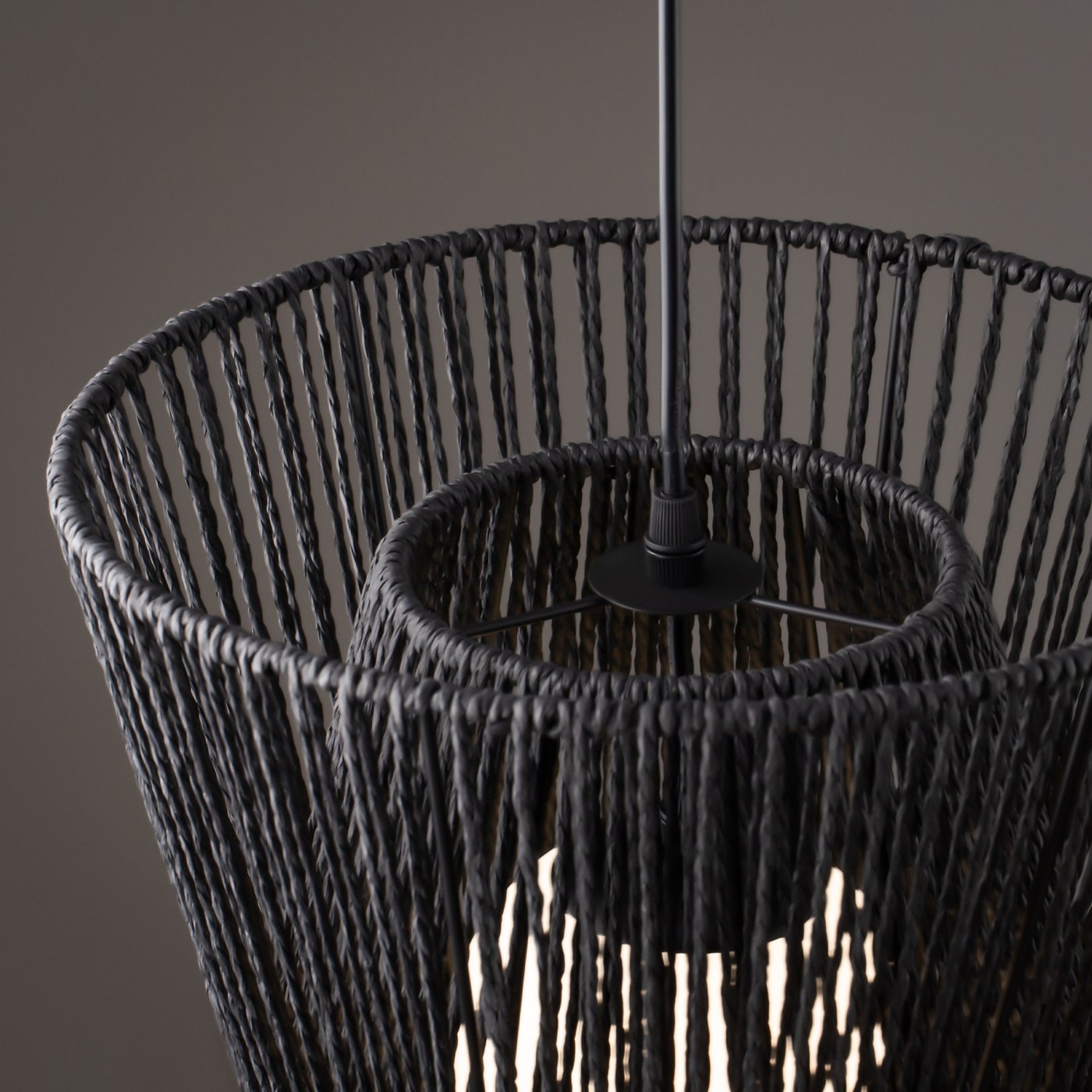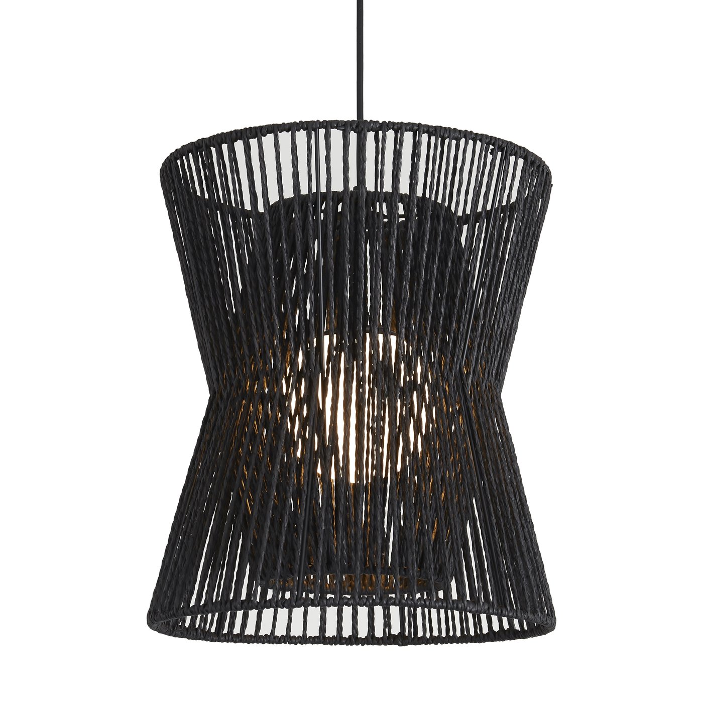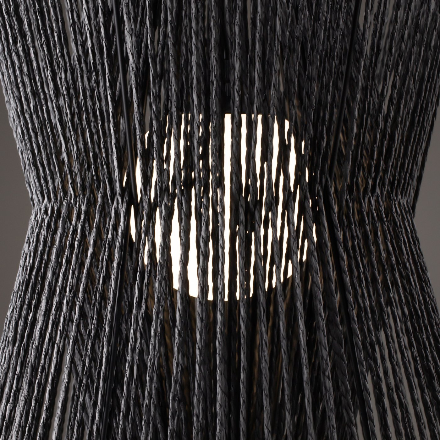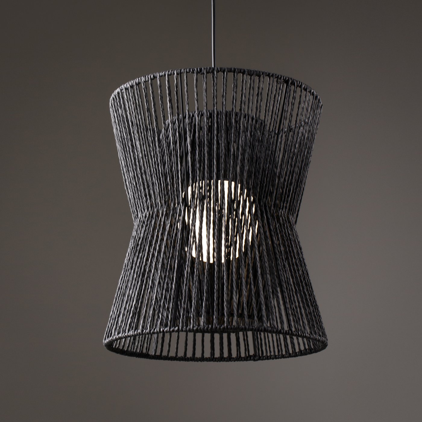 Подвес выполнен как двухслойный абажур с характерной «перетяжкой»: наружный каркас из чёрного металла оплетён бумажной верёвкой, а внутри установлен матовый стеклянный плафон, скрывающий лампу. В коллекции Freya Cottage такая конструкция даёт контролируемый свет: стекло обеспечивает мягкое рассеивание без слепящего центра, а плетёная оболочка формирует выразительный рисунок светотени вокруг подвеса. Светильник хорошо работает как локальное освещение над небольшим столом или в зоне отдыха, где важна атмосфера и комфорт для глаз при взгляде вверх. Когда человек проходит рядом, тени от переплетения меняются по стенам и потолку, делая свет более объёмным, чем у обычного гладкого плафона. Один патрон E14 позволяет подобрать лампу до 40 Вт по яркости и температуре, чтобы настроить свет под вечерний сценарий или более функциональный режим. Компактные размеры корпуса помогают использовать модель даже в помещениях со стандартной высотой потолка, не перегружая пространство. Степень защиты IP20 рассчитана на сухие жилые и общественные интерьеры.