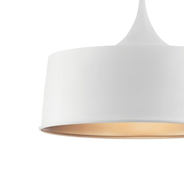 Подвесной светильник Elias из коллекции Kichler с одним источником света выполнен в белом цвете с полусферическим матовым плафоном и внутренним золотистым покрытием, которое смягчает свет и создает теплый визуальный эффект. Такая форма обеспечивает направленный поток света вниз и мягкое рассеянное свечение вверх, равномерно наполняя пространство и сочетая акцентное и общее освещение. Кабель длиной 1575 мм и включенные удлинители 914 мм позволяют регулировать высоту подвеса под потолки различной высоты, а диаметр 559 мм и общая высота 1346 мм формируют компактную, но заметную конструкцию. Светильник рассчитан на лампу типа A21 с цоколем Medium, что позволяет использовать стандартные источники света для удобной замены. Масса 3,4 кг обеспечивает надежную установку, а белый цвет корпуса визуально расширяет пространство и добавляет светлую воздушность интерьеру. Модель трансформируется в полупотолочную установку, что делает её универсальным решением для интерьеров в стиле модерн или современный минимализм, сочетая функциональность и декоративный эффект.